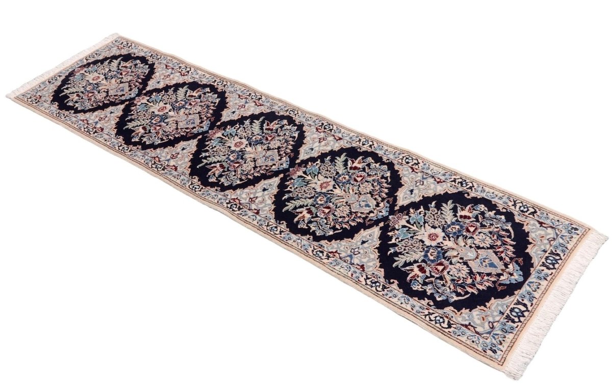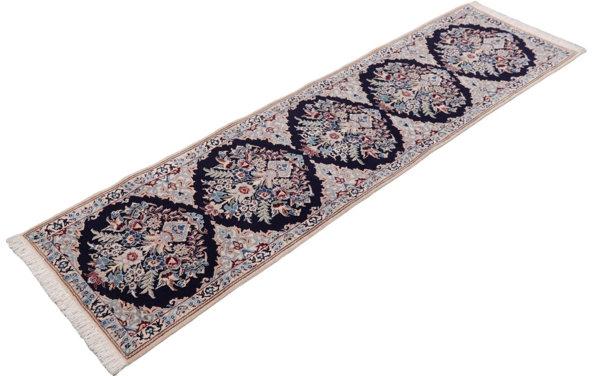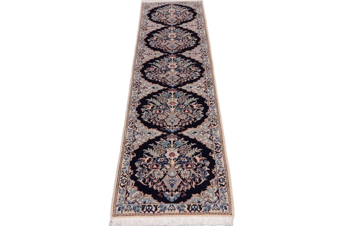 Die Knüpfqualität eines Nainteppichs wird in La gemessen, was die Faseranzahl der Kettfäden bezeichnet – je geringer diese ist, umso feiner ist der Perserteppich geknüpft. 9 La, 6 La und 4 La Qualitäten sind recht oft anzutreffen, wobei die niedrigste Zahl für eine extra-feine Knüpfung von über 1.000.000 Knoten/m² steht. Als Experten präsentieren wir Ihnen auf mytepp.de eine Auswahl hochwertiger Nain-Knüpfkunstwerke, die Sie nach Belieben online kaufen können. Neben den gängigen (9,6,4)La-Qualitäten halten wir exklusivste 2 La-Nainteppiche bereit – auch diesbezügliche Anfragen nehmen wir gerne entgegen.