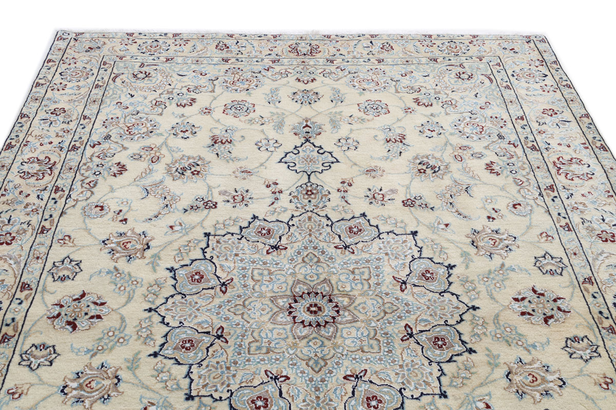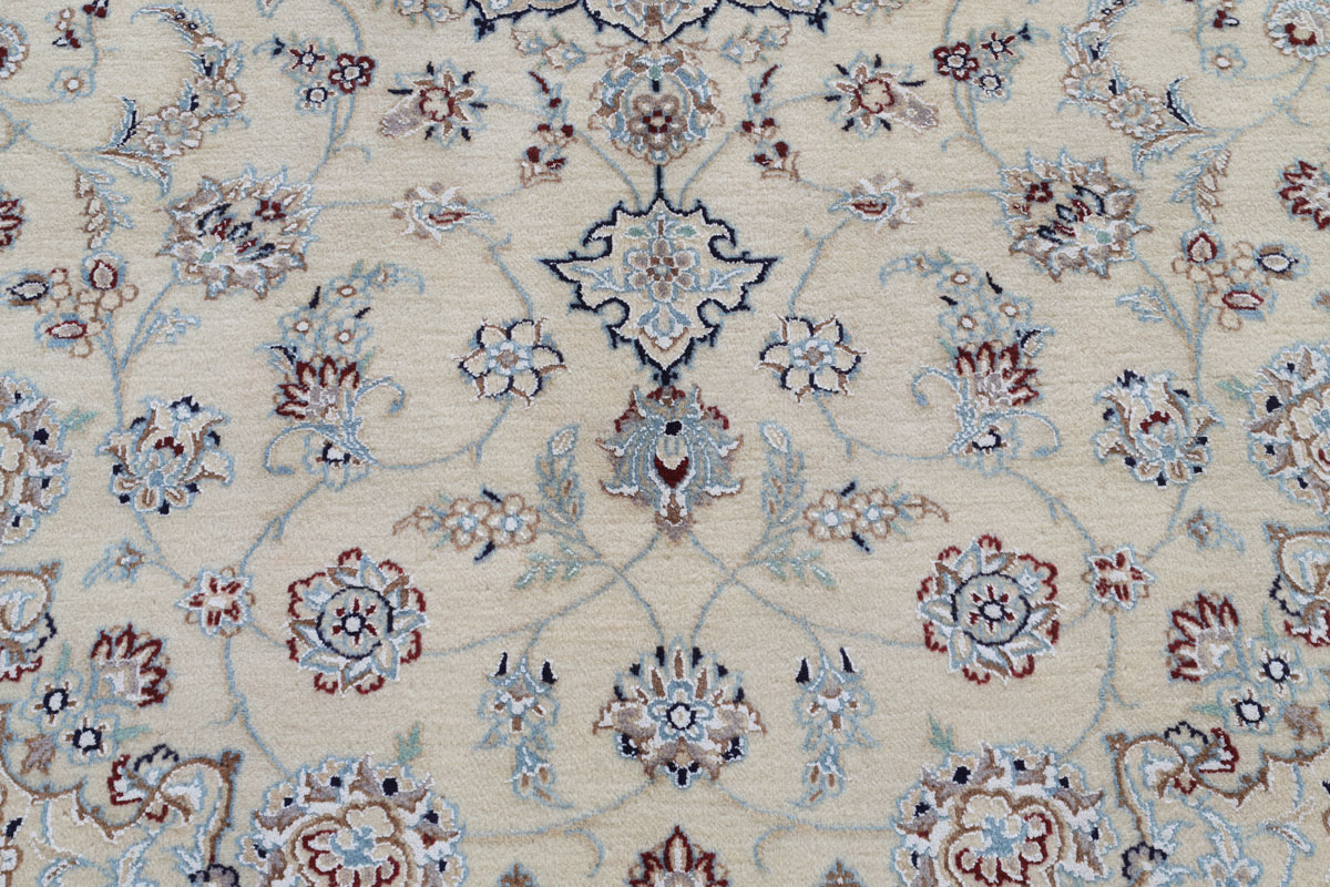 Östlich der iranischen Kulturmetropole Isfahan liegt die Oasenstadt Nain, die als Zentrum der Orientteppich-Produktion Weltruhm erlangt hat. Aus den Manufakturen dieser Stadt stammt der edle Nain-Perserteppich, der mit seinem filigranen Arabesken-Muster an den Isfahan-Orientteppich erinnert, diesen jedoch hinsichtlich der Knüpfdichte häufig übertrifft. Traditionell ist der Nain-Perserteppich in dezenten Blau-, Weiß- und Beigetönen gehalten. Bei mytepp.de lassen sich außerdem weitere Nain-Farbvariationen online kaufen, die gleichfalls zu modernen und repräsentativen Wohnungseinrichtungen passen.
