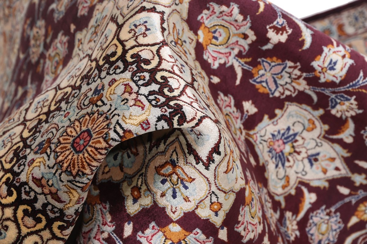 Wer hochwertige Teppiche online kaufen möchte, wird von der Farbenpracht und Mustervielfalt unserer Ghom-Seidenteppiche und der Ghom-Teppiche aus feinster Korkwolle beeindruckt sein. Günstig (bei mytepp) finden Sie bereits kleinere Formate mit erstaunlich detaillierter Knüpfung für traumhafte Wanddekorationen. Sehr empfehlenswert sind außerdem unsere erlesenen Ghom-Meisterknüpfungen mit Signatur aus professionellen Ateliers. Solch feine Teppiche wird man nicht immer online kaufenkönnen, denn auf Ghom-Teppiche spezialisierte Manufakturbetreiber finden heute kaum noch Nachfolger. Der Wert dieser Sammlerstücke aus Ghom, die Sie günstig (bei mytepp) erwerben können, wird also gewiss noch steigen.