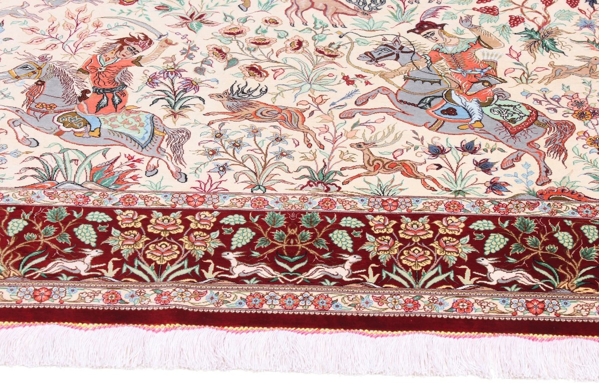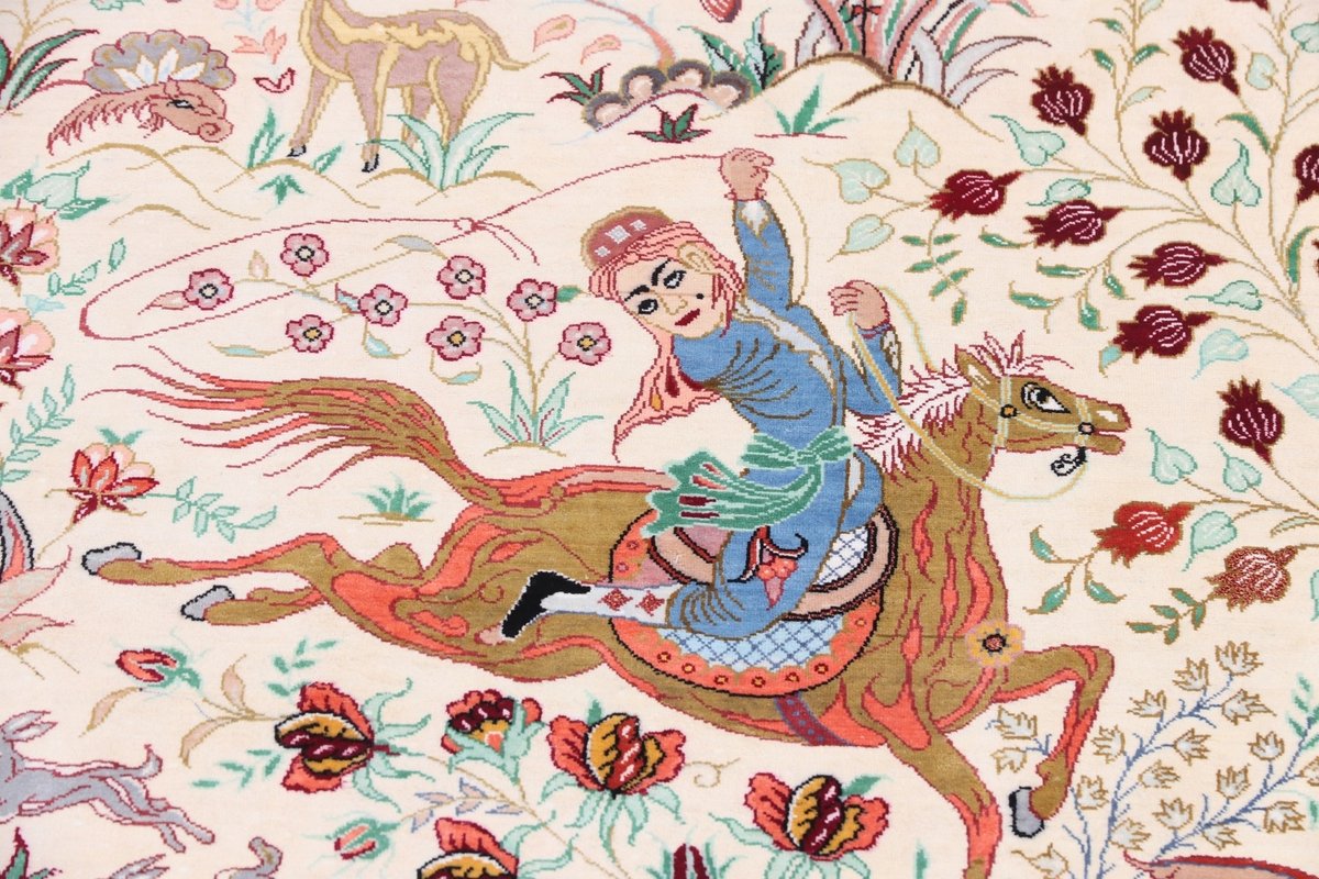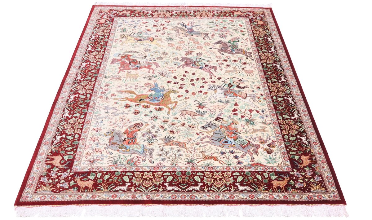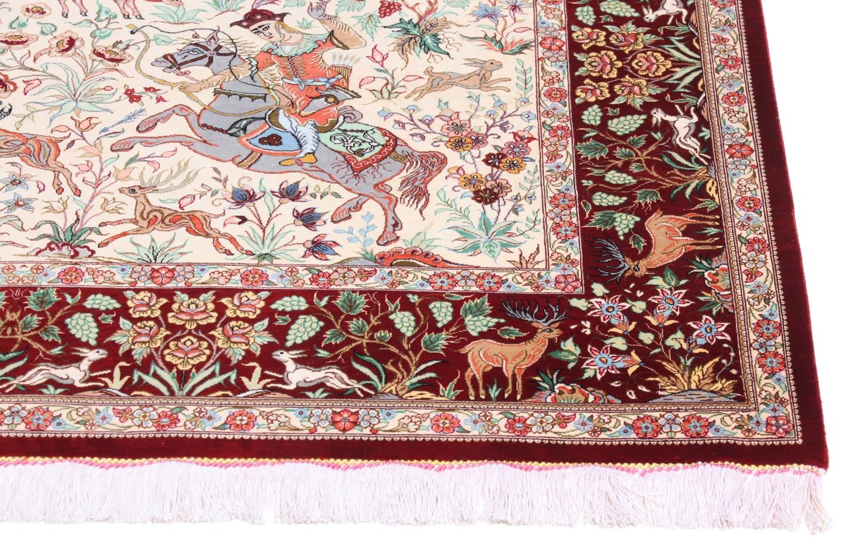 Wer hochwertige Teppiche online kaufen möchte, wird von der Farbenpracht und Mustervielfalt unserer Ghom-Seidenteppiche und der Ghom-Teppiche aus feinster Korkwolle beeindruckt sein. Günstig (bei mytepp) finden Sie bereits kleinere Formate mit erstaunlich detaillierter Knüpfung für traumhafte Wanddekorationen. Sehr empfehlenswert sind außerdem unsere erlesenen Ghom-Meisterknüpfungen mit Signatur aus professionellen Ateliers. Solch feine Teppiche wird man nicht immer online kaufenkönnen, denn auf Ghom-Teppiche spezialisierte Manufakturbetreiber finden heute kaum noch Nachfolger. Der Wert dieser Sammlerstücke aus Ghom, die Sie günstig (bei mytepp) erwerben können, wird also gewiss noch steigen.