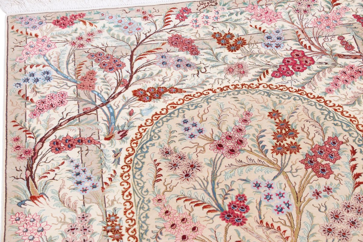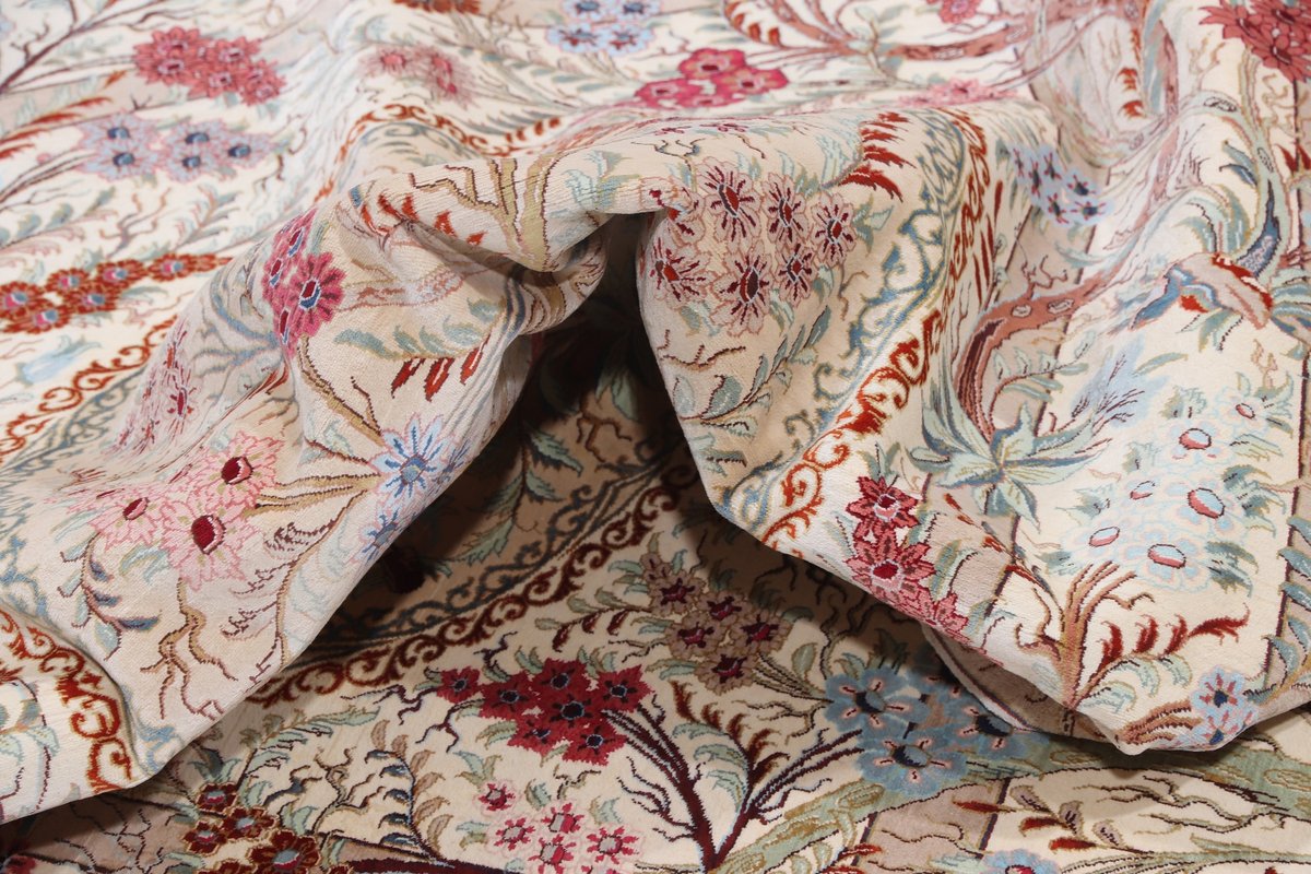 Wer hochwertige Teppiche online kaufen möchte, wird von der Farbenpracht und Mustervielfalt unserer Ghom-Seidenteppiche und der Ghom-Teppiche aus feinster Korkwolle beeindruckt sein. Günstig (bei mytepp) finden Sie bereits kleinere Formate mit erstaunlich detaillierter Knüpfung für traumhafte Wanddekorationen. Sehr empfehlenswert sind außerdem unsere erlesenen Ghom-Meisterknüpfungen mit Signatur aus professionellen Ateliers. Solch feine Teppiche wird man nicht immer online kaufenkönnen, denn auf Ghom-Teppiche spezialisierte Manufakturbetreiber finden heute kaum noch Nachfolger. Der Wert dieser Sammlerstücke aus Ghom, die Sie günstig (bei mytepp) erwerben können, wird also gewiss noch steigen.