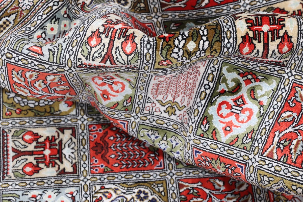 Wer hochwertige Teppiche online kaufen möchte, wird von der Farbenpracht und Mustervielfalt unserer Ghom-Seidenteppiche und der Ghom-Teppiche aus feinster Korkwolle beeindruckt sein. Günstig (bei mytepp) finden Sie bereits kleinere Formate mit erstaunlich detaillierter Knüpfung für traumhafte Wanddekorationen. Sehr empfehlenswert sind außerdem unsere erlesenen Ghom-Meisterknüpfungen mit Signatur aus professionellen Ateliers. Solch feine Teppiche wird man nicht immer online kaufenkönnen, denn auf Ghom-Teppiche spezialisierte Manufakturbetreiber finden heute kaum noch Nachfolger. Der Wert dieser Sammlerstücke aus Ghom, die Sie günstig (bei mytepp) erwerben können, wird also gewiss noch steigen.