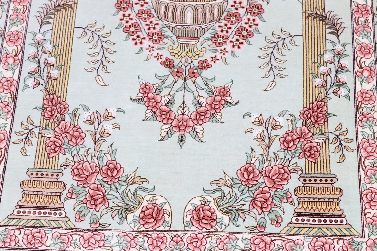 Wer hochwertige Teppiche online kaufen möchte, wird von der Farbenpracht und Mustervielfalt unserer Ghom-Seidenteppiche und der Ghom-Teppiche aus feinster Korkwolle beeindruckt sein. Günstig (bei mytepp) finden Sie bereits kleinere Formate mit erstaunlich detaillierter Knüpfung für traumhafte Wanddekorationen. Sehr empfehlenswert sind außerdem unsere erlesenen Ghom-Meisterknüpfungen mit Signatur aus professionellen Ateliers. Solch feine Teppiche wird man nicht immer online kaufenkönnen, denn auf Ghom-Teppiche spezialisierte Manufakturbetreiber finden heute kaum noch Nachfolger. Der Wert dieser Sammlerstücke aus Ghom, die Sie günstig (bei mytepp) erwerben können, wird also gewiss noch steigen.