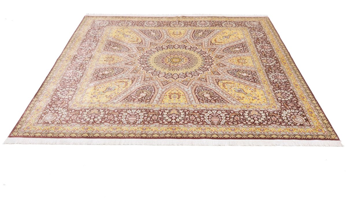 Wer hochwertige Teppiche online kaufen möchte, wird von der Farbenpracht und Mustervielfalt unserer Ghom-Seidenteppiche und der Ghom-Teppiche aus feinster Korkwolle beeindruckt sein. Günstig (bei mytepp) finden Sie bereits kleinere Formate mit erstaunlich detaillierter Knüpfung für traumhafte Wanddekorationen. Sehr empfehlenswert sind außerdem unsere erlesenen Ghom-Meisterknüpfungen mit Signatur aus professionellen Ateliers. Solch feine Teppiche wird man nicht immer online kaufenkönnen, denn auf Ghom-Teppiche spezialisierte Manufakturbetreiber finden heute kaum noch Nachfolger. Der Wert dieser Sammlerstücke aus Ghom, die Sie günstig (bei mytepp) erwerben können, wird also gewiss noch steigen.