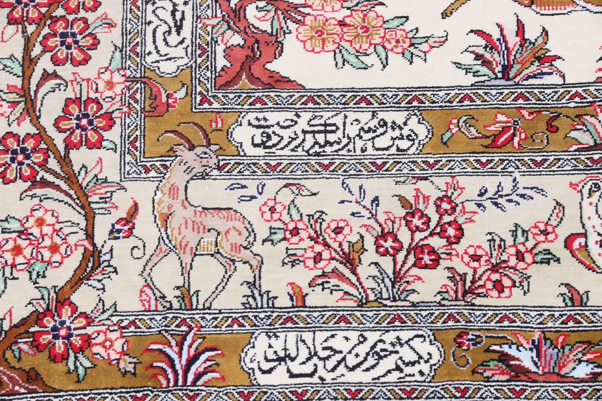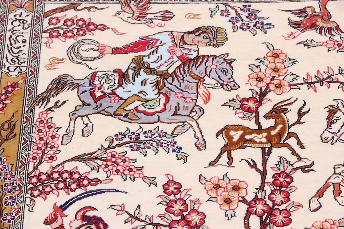 Wer hochwertige Teppiche online kaufen möchte, wird von der Farbenpracht und Mustervielfalt unserer Ghom-Seidenteppiche und der Ghom-Teppiche aus feinster Korkwolle beeindruckt sein. Günstig (bei mytepp) finden Sie bereits kleinere Formate mit erstaunlich detaillierter Knüpfung für traumhafte Wanddekorationen. Sehr empfehlenswert sind außerdem unsere erlesenen Ghom-Meisterknüpfungen mit Signatur aus professionellen Ateliers. Solch feine Teppiche wird man nicht immer online kaufenkönnen, denn auf Ghom-Teppiche spezialisierte Manufakturbetreiber finden heute kaum noch Nachfolger. Der Wert dieser Sammlerstücke aus Ghom, die Sie günstig (bei mytepp) erwerben können, wird also gewiss noch steigen.