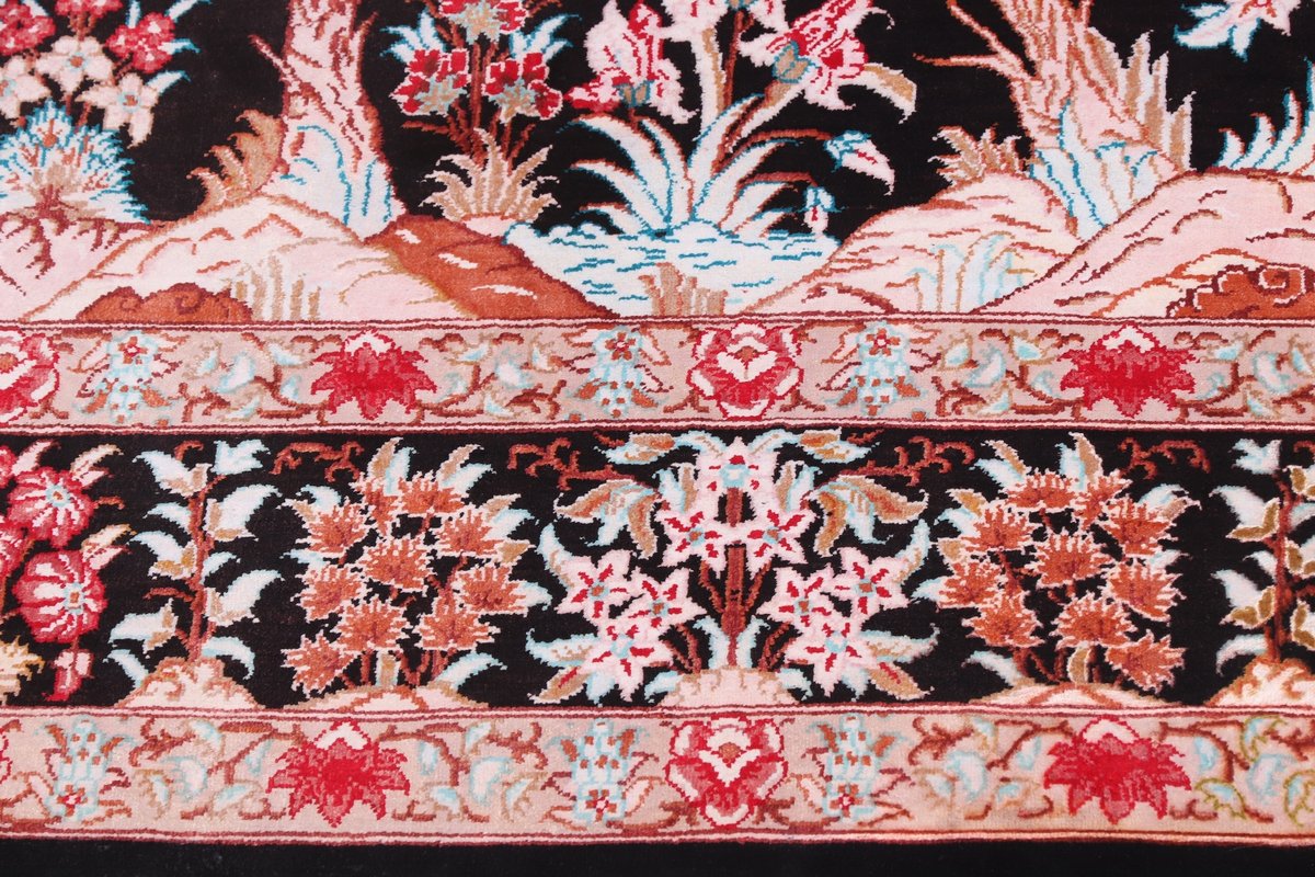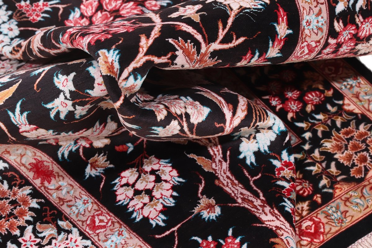 Wer hochwertige Teppiche online kaufen möchte, wird von der Farbenpracht und Mustervielfalt unserer Ghom-Seidenteppiche und der Ghom-Teppiche aus feinster Korkwolle beeindruckt sein. Günstig (bei mytepp) finden Sie bereits kleinere Formate mit erstaunlich detaillierter Knüpfung für traumhafte Wanddekorationen. Sehr empfehlenswert sind außerdem unsere erlesenen Ghom-Meisterknüpfungen mit Signatur aus professionellen Ateliers. Solch feine Teppiche wird man nicht immer online kaufenkönnen, denn auf Ghom-Teppiche spezialisierte Manufakturbetreiber finden heute kaum noch Nachfolger. Der Wert dieser Sammlerstücke aus Ghom, die Sie günstig (bei mytepp) erwerben können, wird also gewiss noch steigen.