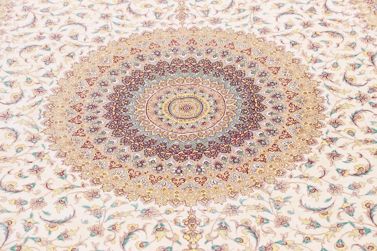 Wer hochwertige Teppiche online kaufen möchte, wird von der Farbenpracht und Mustervielfalt unserer Ghom-Seidenteppiche und der Ghom-Teppiche aus feinster Korkwolle beeindruckt sein. Günstig (bei mytepp) finden Sie bereits kleinere Formate mit erstaunlich detaillierter Knüpfung für traumhafte Wanddekorationen. Sehr empfehlenswert sind außerdem unsere erlesenen Ghom-Meisterknüpfungen mit Signatur aus professionellen Ateliers. Solch feine Teppiche wird man nicht immer online kaufenkönnen, denn auf Ghom-Teppiche spezialisierte Manufakturbetreiber finden heute kaum noch Nachfolger. Der Wert dieser Sammlerstücke aus Ghom, die Sie günstig (bei mytepp) erwerben können, wird also gewiss noch steigen.