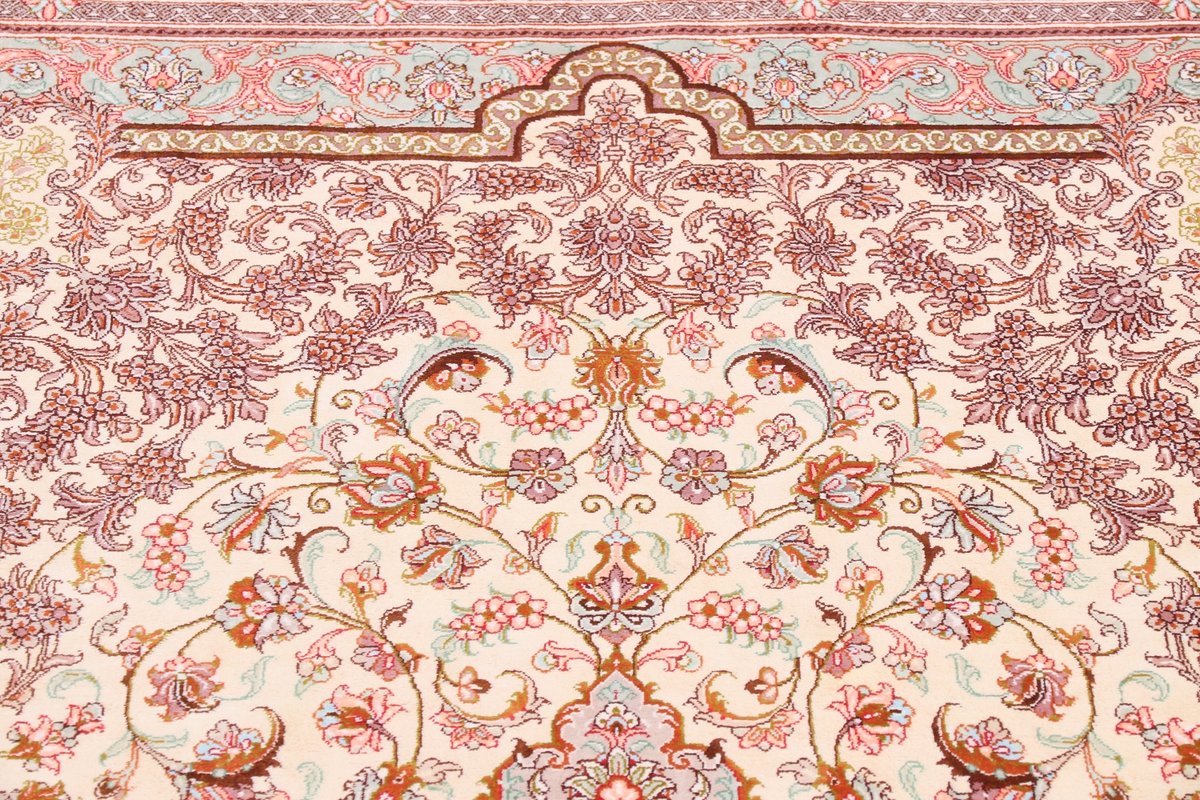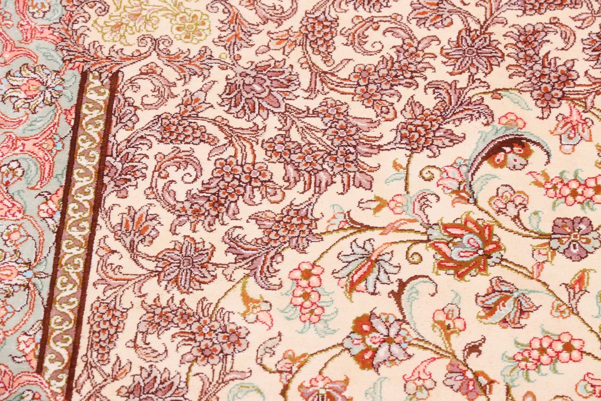 Wer hochwertige Teppiche online kaufen möchte, wird von der Farbenpracht und Mustervielfalt unserer Ghom-Seidenteppiche und der Ghom-Teppiche aus feinster Korkwolle beeindruckt sein. Günstig (bei mytepp) finden Sie bereits kleinere Formate mit erstaunlich detaillierter Knüpfung für traumhafte Wanddekorationen. Sehr empfehlenswert sind außerdem unsere erlesenen Ghom-Meisterknüpfungen mit Signatur aus professionellen Ateliers. Solch feine Teppiche wird man nicht immer online kaufenkönnen, denn auf Ghom-Teppiche spezialisierte Manufakturbetreiber finden heute kaum noch Nachfolger. Der Wert dieser Sammlerstücke aus Ghom, die Sie günstig (bei mytepp) erwerben können, wird also gewiss noch steigen.