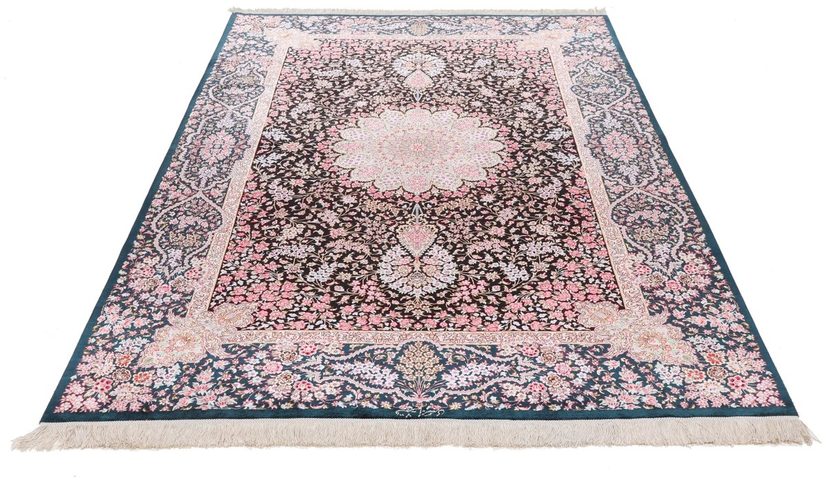 Wer hochwertige Teppiche online kaufen möchte, wird von der Farbenpracht und Mustervielfalt unserer Ghom-Seidenteppiche und der Ghom-Teppiche aus feinster Korkwolle beeindruckt sein. Günstig (bei mytepp) finden Sie bereits kleinere Formate mit erstaunlich detaillierter Knüpfung für traumhafte Wanddekorationen. Sehr empfehlenswert sind außerdem unsere erlesenen Ghom-Meisterknüpfungen mit Signatur aus professionellen Ateliers. Solch feine Teppiche wird man nicht immer online kaufenkönnen, denn auf Ghom-Teppiche spezialisierte Manufakturbetreiber finden heute kaum noch Nachfolger. Der Wert dieser Sammlerstücke aus Ghom, die Sie günstig (bei mytepp) erwerben können, wird also gewiss noch steigen.