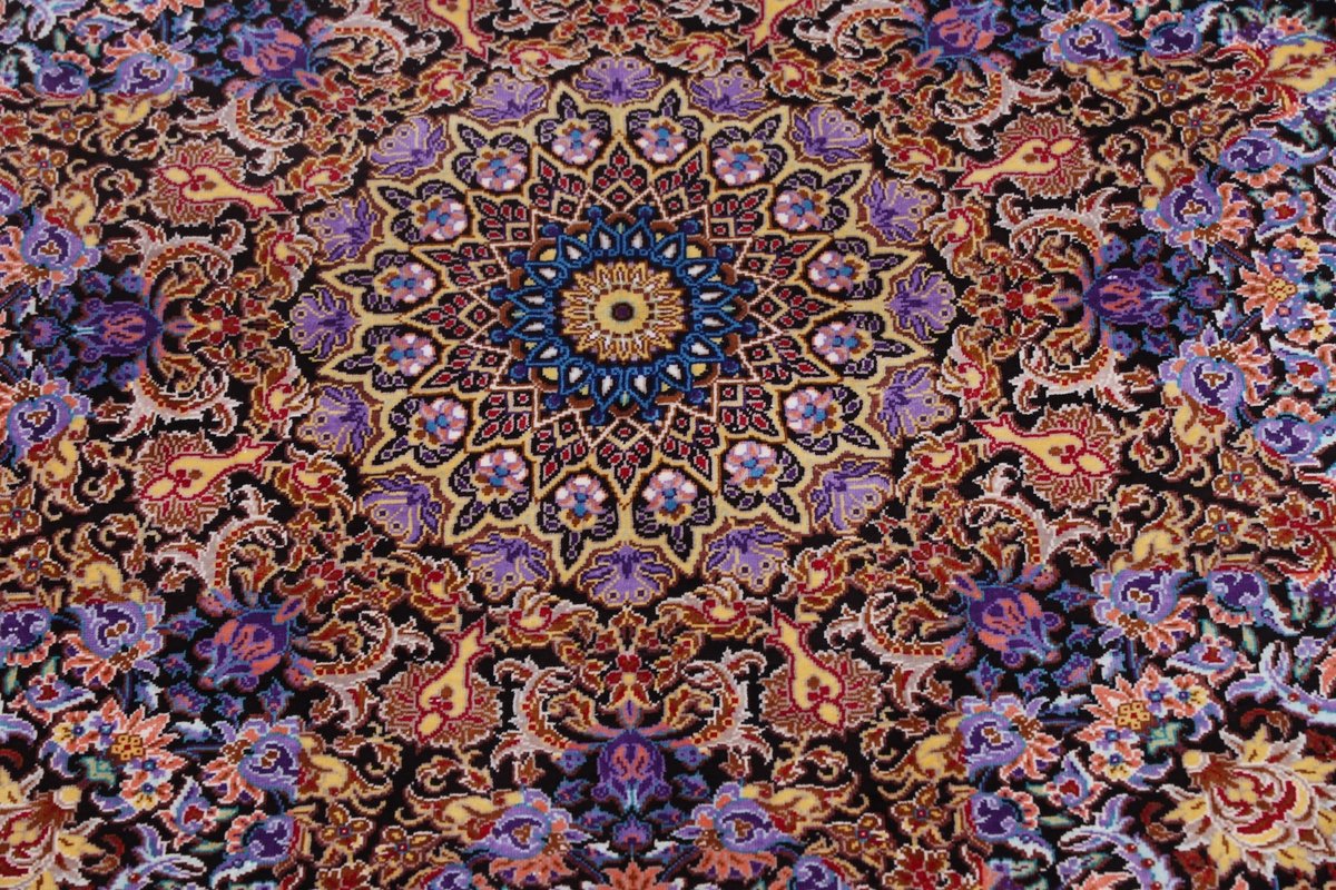 Wer hochwertige Teppiche online kaufen möchte, wird von der Farbenpracht und Mustervielfalt unserer Ghom-Seidenteppiche und der Ghom-Teppiche aus feinster Korkwolle beeindruckt sein. Günstig (bei mytepp) finden Sie bereits kleinere Formate mit erstaunlich detaillierter Knüpfung für traumhafte Wanddekorationen. Sehr empfehlenswert sind außerdem unsere erlesenen Ghom-Meisterknüpfungen mit Signatur aus professionellen Ateliers. Solch feine Teppiche wird man nicht immer online kaufenkönnen, denn auf Ghom-Teppiche spezialisierte Manufakturbetreiber finden heute kaum noch Nachfolger. Der Wert dieser Sammlerstücke aus Ghom, die Sie günstig (bei mytepp) erwerben können, wird also gewiss noch steigen.