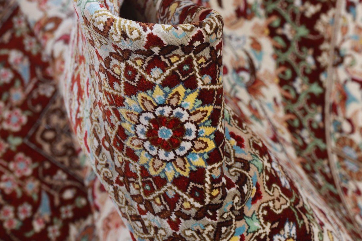 Wer hochwertige Teppiche online kaufen möchte, wird von der Farbenpracht und Mustervielfalt unserer Ghom-Seidenteppiche und der Ghom-Teppiche aus feinster Korkwolle beeindruckt sein. Günstig (bei mytepp) finden Sie bereits kleinere Formate mit erstaunlich detaillierter Knüpfung für traumhafte Wanddekorationen. Sehr empfehlenswert sind außerdem unsere erlesenen Ghom-Meisterknüpfungen mit Signatur aus professionellen Ateliers. Solch feine Teppiche wird man nicht immer online kaufenkönnen, denn auf Ghom-Teppiche spezialisierte Manufakturbetreiber finden heute kaum noch Nachfolger. Der Wert dieser Sammlerstücke aus Ghom, die Sie günstig (bei mytepp) erwerben können, wird also gewiss noch steigen.