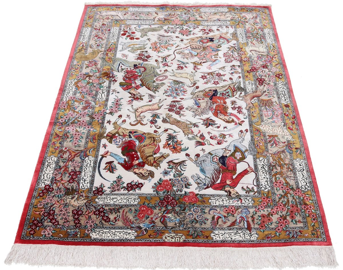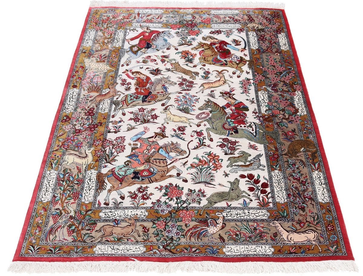 Wer hochwertige Teppiche online kaufen möchte, wird von der Farbenpracht und Mustervielfalt unserer Ghom-Seidenteppiche und der Ghom-Teppiche aus feinster Korkwolle beeindruckt sein. Günstig (bei mytepp) finden Sie bereits kleinere Formate mit erstaunlich detaillierter Knüpfung für traumhafte Wanddekorationen. Sehr empfehlenswert sind außerdem unsere erlesenen Ghom-Meisterknüpfungen mit Signatur aus professionellen Ateliers. Solch feine Teppiche wird man nicht immer online kaufenkönnen, denn auf Ghom-Teppiche spezialisierte Manufakturbetreiber finden heute kaum noch Nachfolger. Der Wert dieser Sammlerstücke aus Ghom, die Sie günstig (bei mytepp) erwerben können, wird also gewiss noch steigen.