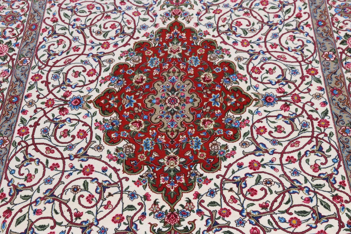 Wer hochwertige Teppiche online kaufen möchte, wird von der Farbenpracht und Mustervielfalt unserer Ghom-Seidenteppiche und der Ghom-Teppiche aus feinster Korkwolle beeindruckt sein. Günstig (bei mytepp) finden Sie bereits kleinere Formate mit erstaunlich detaillierter Knüpfung für traumhafte Wanddekorationen. Sehr empfehlenswert sind außerdem unsere erlesenen Ghom-Meisterknüpfungen mit Signatur aus professionellen Ateliers. Solch feine Teppiche wird man nicht immer online kaufenkönnen, denn auf Ghom-Teppiche spezialisierte Manufakturbetreiber finden heute kaum noch Nachfolger. Der Wert dieser Sammlerstücke aus Ghom, die Sie günstig (bei mytepp) erwerben können, wird also gewiss noch steigen.