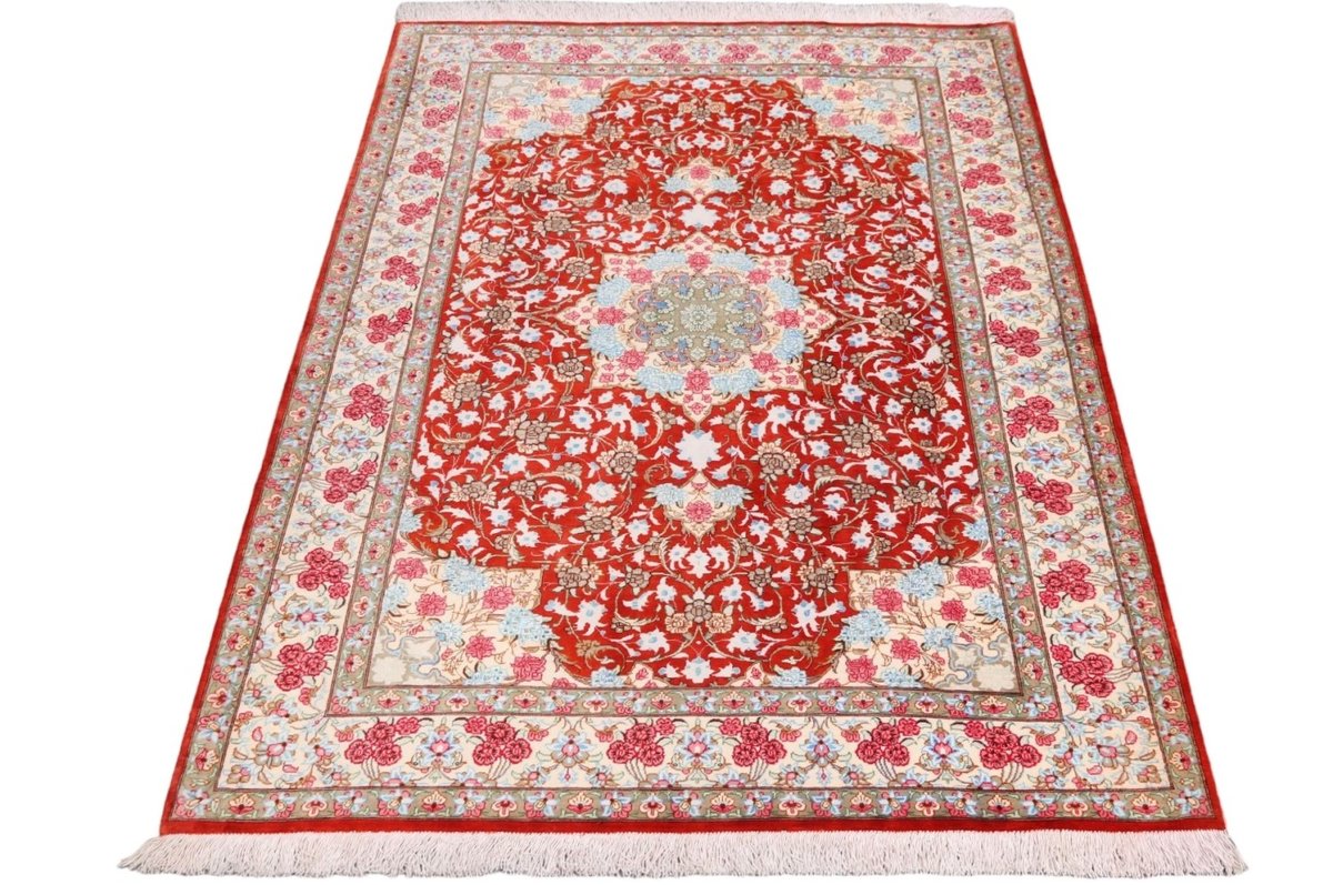 Wer hochwertige Teppiche online kaufen möchte, wird von der Farbenpracht und Mustervielfalt unserer Ghom-Seidenteppiche und der Ghom-Teppiche aus feinster Korkwolle beeindruckt sein. Günstig (bei mytepp) finden Sie bereits kleinere Formate mit erstaunlich detaillierter Knüpfung für traumhafte Wanddekorationen. Sehr empfehlenswert sind außerdem unsere erlesenen Ghom-Meisterknüpfungen mit Signatur aus professionellen Ateliers. Solch feine Teppiche wird man nicht immer online kaufenkönnen, denn auf Ghom-Teppiche spezialisierte Manufakturbetreiber finden heute kaum noch Nachfolger. Der Wert dieser Sammlerstücke aus Ghom, die Sie günstig (bei mytepp) erwerben können, wird also gewiss noch steigen.