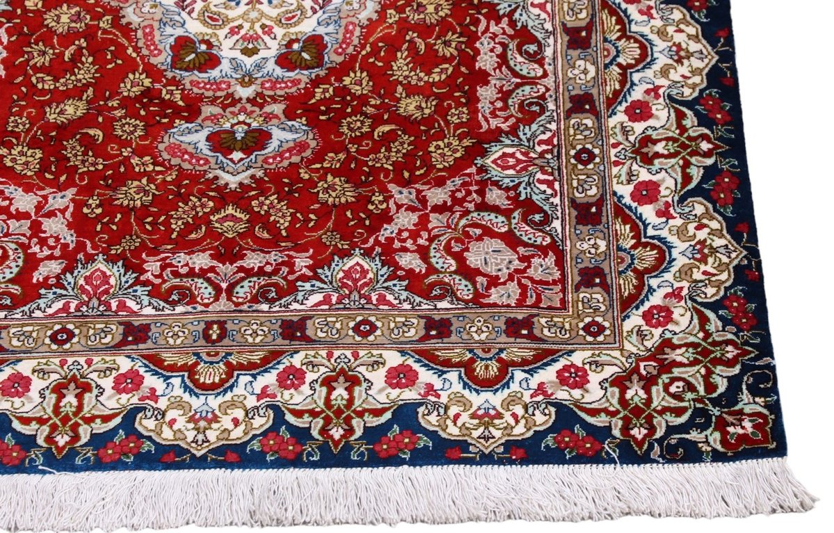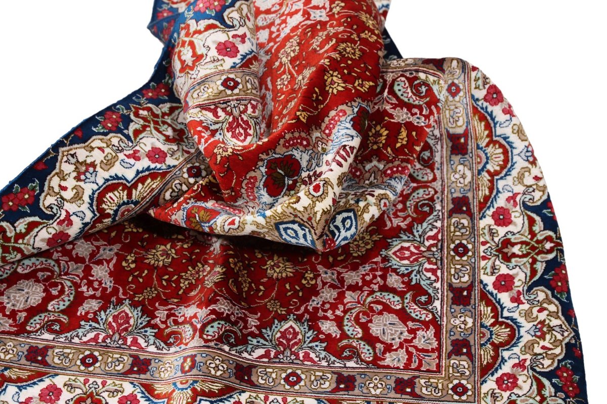 Wer hochwertige Teppiche online kaufen möchte, wird von der Farbenpracht und Mustervielfalt unserer Ghom-Seidenteppiche und der Ghom-Teppiche aus feinster Korkwolle beeindruckt sein. Günstig (bei mytepp) finden Sie bereits kleinere Formate mit erstaunlich detaillierter Knüpfung für traumhafte Wanddekorationen. Sehr empfehlenswert sind außerdem unsere erlesenen Ghom-Meisterknüpfungen mit Signatur aus professionellen Ateliers. Solch feine Teppiche wird man nicht immer online kaufenkönnen, denn auf Ghom-Teppiche spezialisierte Manufakturbetreiber finden heute kaum noch Nachfolger. Der Wert dieser Sammlerstücke aus Ghom, die Sie günstig (bei mytepp) erwerben können, wird also gewiss noch steigen.