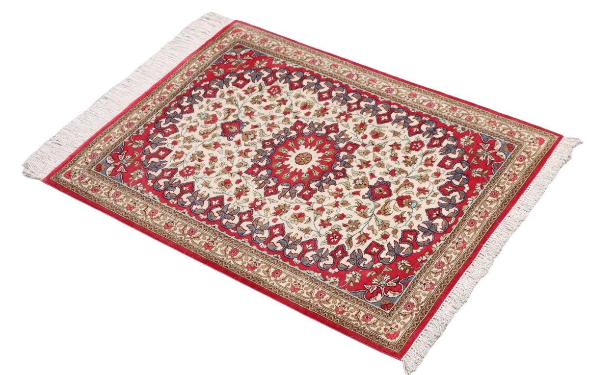 Wer hochwertige Teppiche online kaufen möchte, wird von der Farbenpracht und Mustervielfalt unserer Ghom-Seidenteppiche und der Ghom-Teppiche aus feinster Korkwolle beeindruckt sein. Günstig (bei mytepp) finden Sie bereits kleinere Formate mit erstaunlich detaillierter Knüpfung für traumhafte Wanddekorationen. Sehr empfehlenswert sind außerdem unsere erlesenen Ghom-Meisterknüpfungen mit Signatur aus professionellen Ateliers. Solch feine Teppiche wird man nicht immer online kaufenkönnen, denn auf Ghom-Teppiche spezialisierte Manufakturbetreiber finden heute kaum noch Nachfolger. Der Wert dieser Sammlerstücke aus Ghom, die Sie günstig (bei mytepp) erwerben können, wird also gewiss noch steigen.