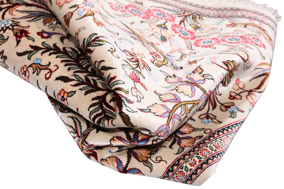 Wer hochwertige Teppiche online kaufen möchte, wird von der Farbenpracht und Mustervielfalt unserer Ghom-Seidenteppiche und der Ghom-Teppiche aus feinster Korkwolle beeindruckt sein. Günstig (bei mytepp) finden Sie bereits kleinere Formate mit erstaunlich detaillierter Knüpfung für traumhafte Wanddekorationen. Sehr empfehlenswert sind außerdem unsere erlesenen Ghom-Meisterknüpfungen mit Signatur aus professionellen Ateliers. Solch feine Teppiche wird man nicht immer online kaufenkönnen, denn auf Ghom-Teppiche spezialisierte Manufakturbetreiber finden heute kaum noch Nachfolger. Der Wert dieser Sammlerstücke aus Ghom, die Sie günstig (bei mytepp) erwerben können, wird also gewiss noch steigen.