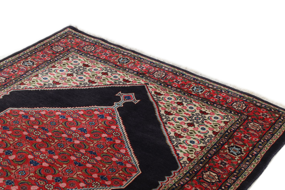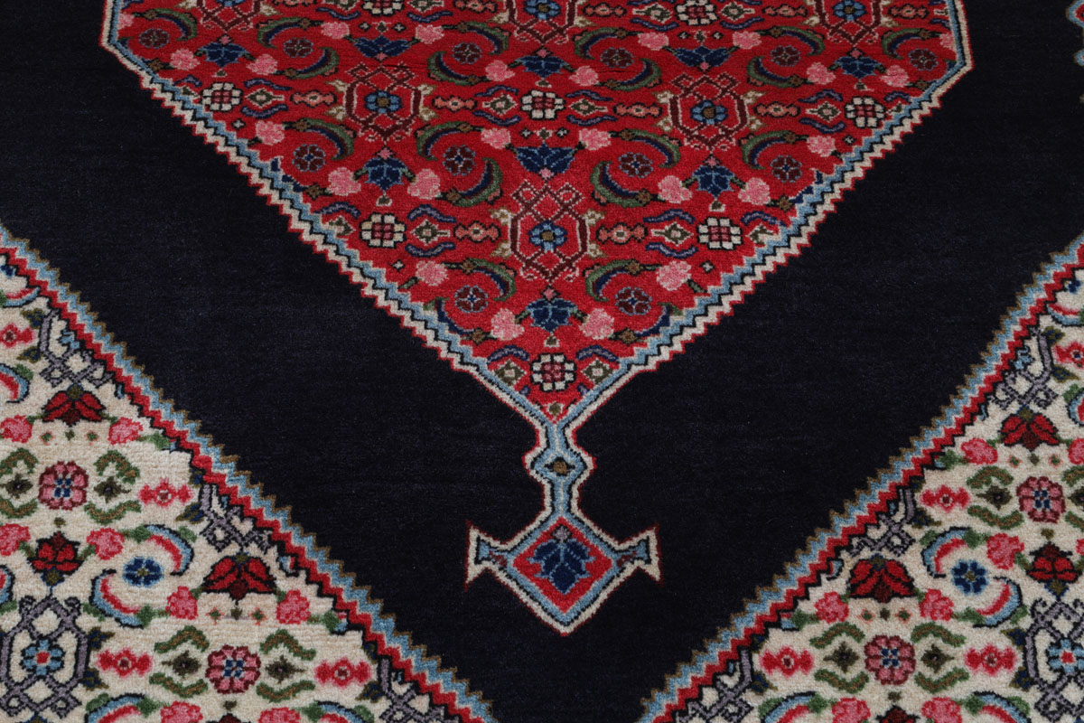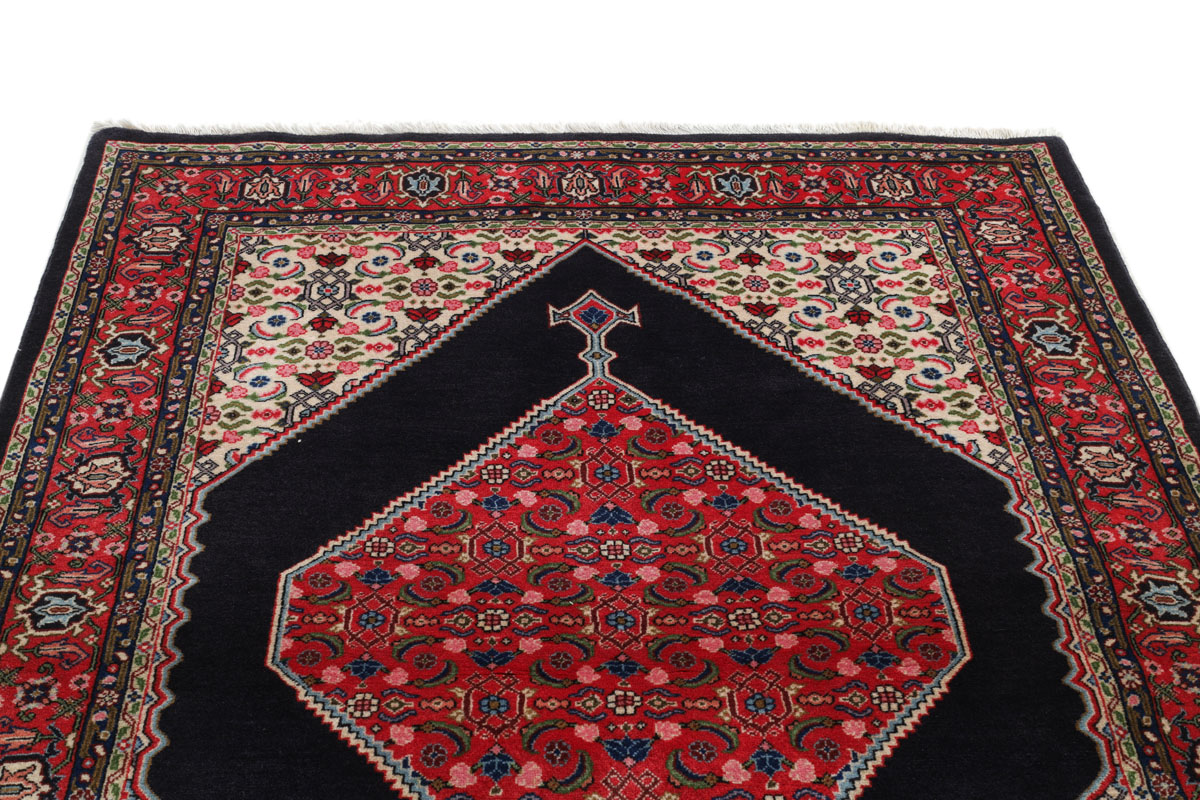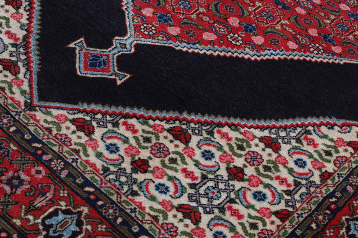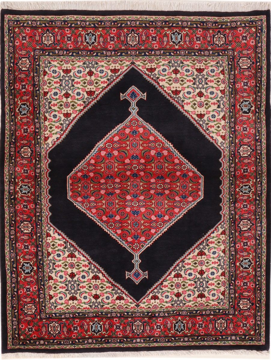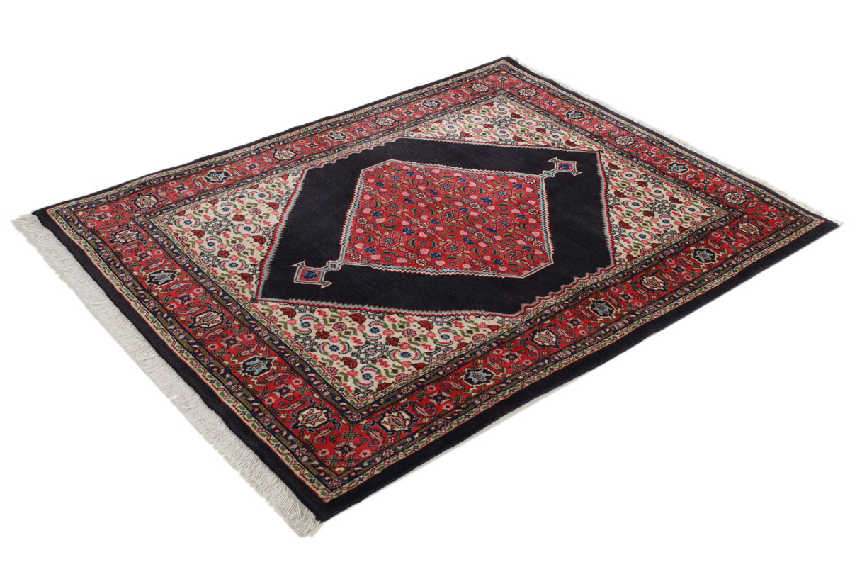 Die Muster können beim Hamadan-Orientteppich sehr vielfältig gestaltet sein, dennoch ist das klassische Herati-Muster mit Raute, stilisierten Blüten und flankierenden Blattmotiven häufig anzutreffen. Anders als bei gängigen Perserteppich-Arten handelt es sich beim symmetrisch geknüpften Hamadan-Perserteppich um Einschussware. Charakteristisch ist für den Hamadan-Orientteppich zudem sein Format, das oft in Brückengrößen von ca. 150×100 cm gehalten ist. Insgesamt gilt der Hamadan als guter Gebrauchsteppich, wobei eventuelle Qualitätsunterschiede vor allem an der jeweils verwendet Wolle gemessen werden.
