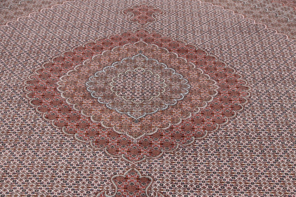 Auch mit seiner prachtvollen Ornamentik wird der Perserteppich höchsten Ansprüchen gerecht: ob traditionelles Mahi-Motiv mit Medaillon, klassische florale Muster, fantasievolle Bilderwelt oder Allover-Muster im Rapport – jedes Design von Täbriz-Teppichen bietet ein herrliches Erscheinungsbild, fördert stilvolles Ambiente und verleiht dem edlen Perserteppich das Potenzial, zu einem hochgeschätzten Sammlerstück zu werden.