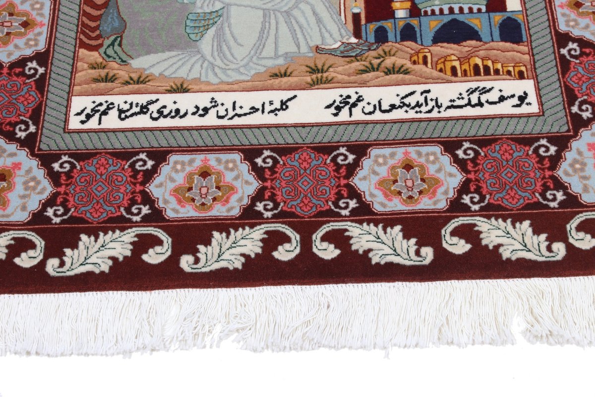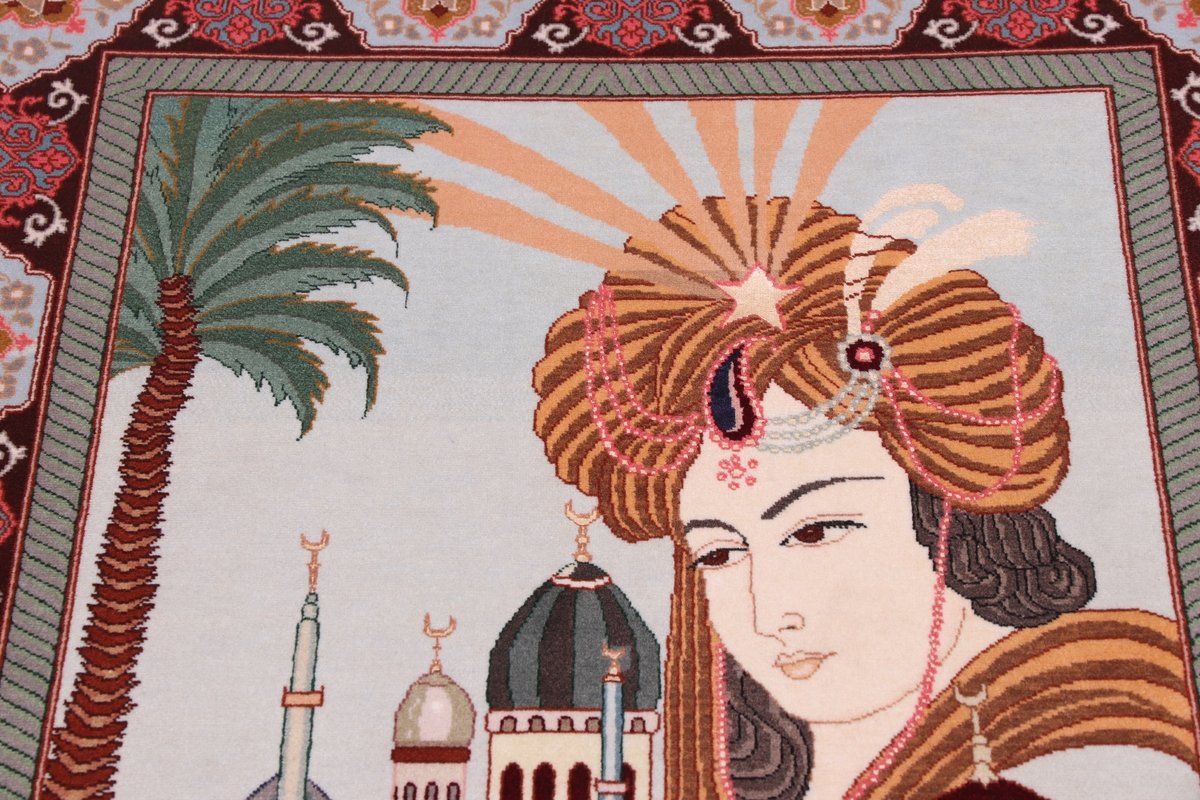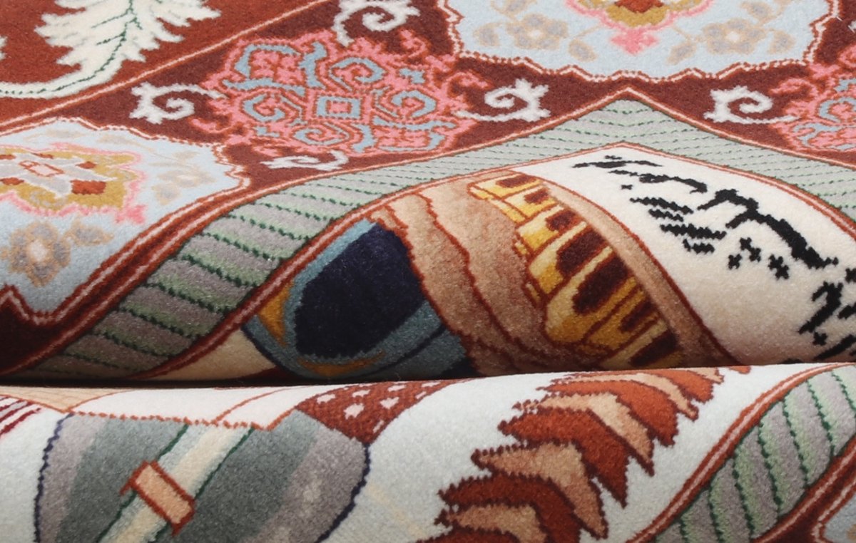Für die besondere Eleganz des Täbriz-Flors sorgen hervorragende Materialien wie samtig anmutende Korkwolle und glänzende Seidenfäden. Die Knüpfqualität eines Täbriz-Teppichs lässt sich aus der angegebenen Raj-Zahl erschließen – je höher diese ausfällt, umso feiner ist die Knüpfdichte, die eine Million und mehr Knoten pro Quadratmeter erreichen kann. Bei besonders feingeknüpften Qualitäten kommt für die Kette statt des üblichen Baumwollgarns sogar Seide zum Einsatz.