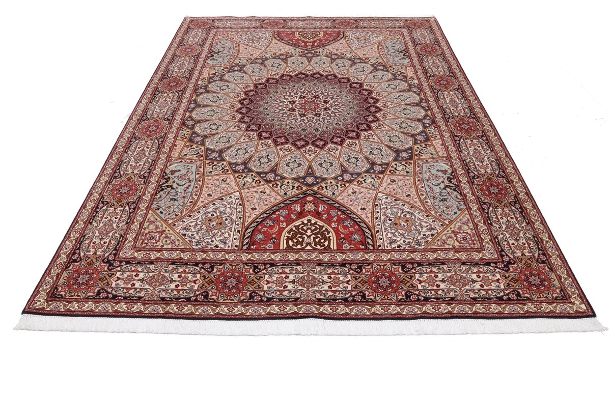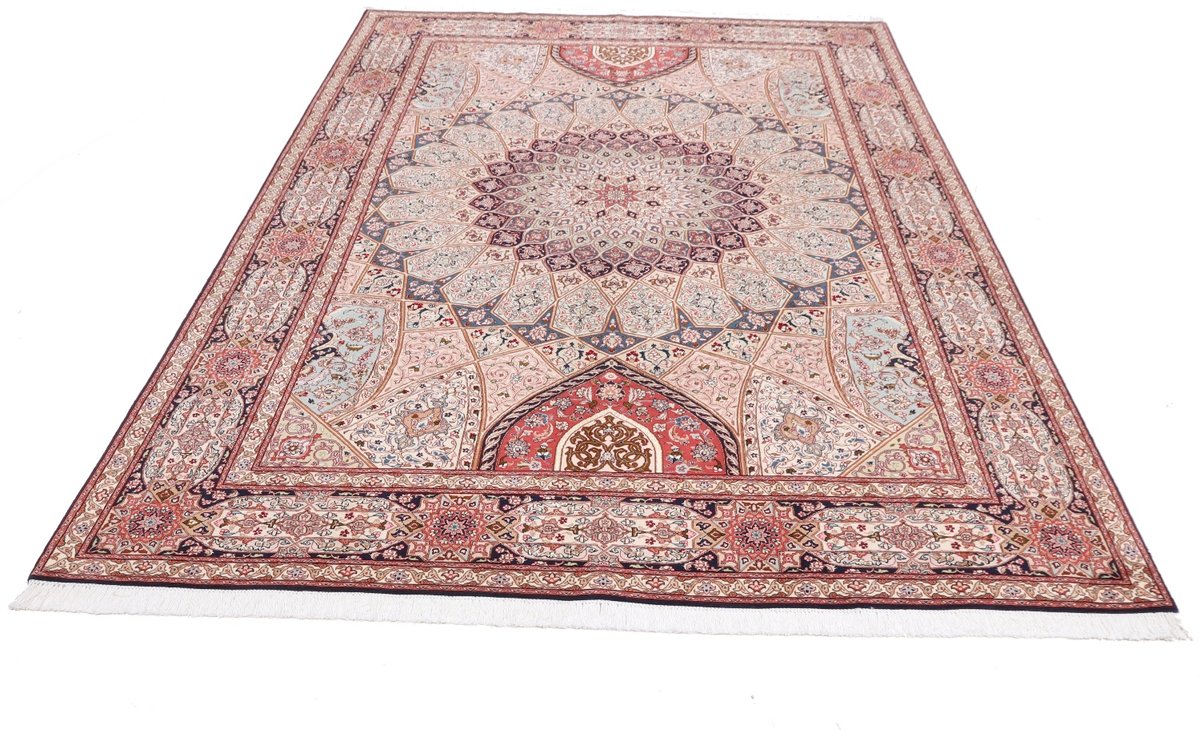Der klassische Täbriz-Perserteppich zählt aufgrund seiner ausgezeichneten Knüpf- und Materialqualitäten sowie der einprägsamen Musterdesigns zu den begehrtesten Manufakturteppichen weltweit. Echte, handgeknüpfte Täbriz-Teppiche stammen aus der gleichnamigen Hauptstadt Ost-Aserbaidschans, einer nordiranischen Kulturmetropole und geschichtsträchtigen Stadt, die bereits im 16. Jahrhundert zu den führenden Zentren der Perserteppich-Produktion gehörte.