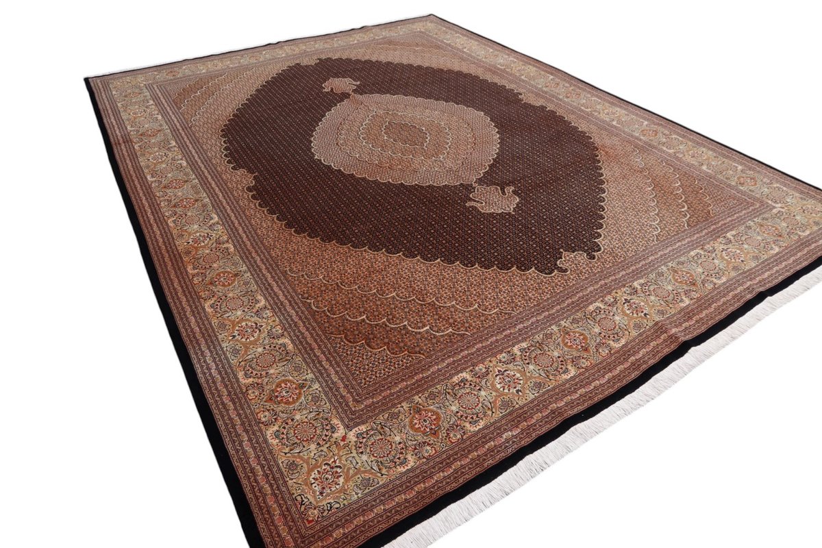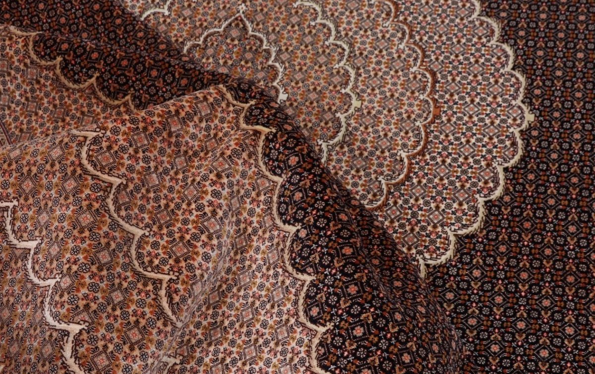 Auch mit seiner prachtvollen Ornamentik wird der Perserteppich höchsten Ansprüchen gerecht: ob traditionelles Mahi-Motiv mit Medaillon, klassische florale Muster, fantasievolle Bilderwelt oder Allover-Muster im Rapport – jedes Design von Täbriz-Teppichen bietet ein herrliches Erscheinungsbild, fördert stilvolles Ambiente und verleiht dem edlen Perserteppich das Potenzial, zu einem hochgeschätzten Sammlerstück zu werden.