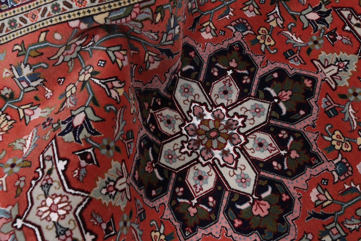 Auch mit seiner prachtvollen Ornamentik wird der Perserteppich höchsten Ansprüchen gerecht: ob traditionelles Mahi-Motiv mit Medaillon, klassische florale Muster, fantasievolle Bilderwelt oder Allover-Muster im Rapport – jedes Design von Täbriz-Teppichen bietet ein herrliches Erscheinungsbild, fördert stilvolles Ambiente und verleiht dem edlen Perserteppich das Potenzial, zu einem hochgeschätzten Sammlerstück zu werden.