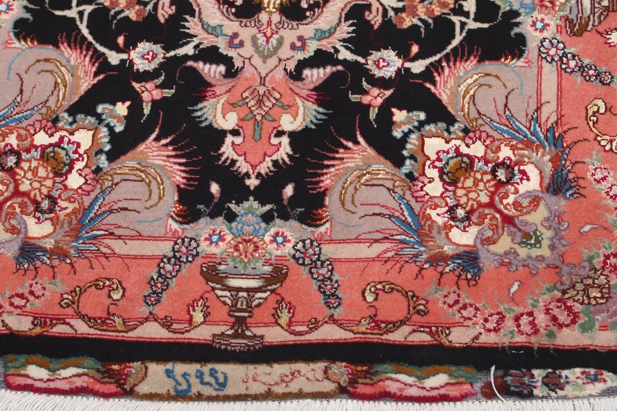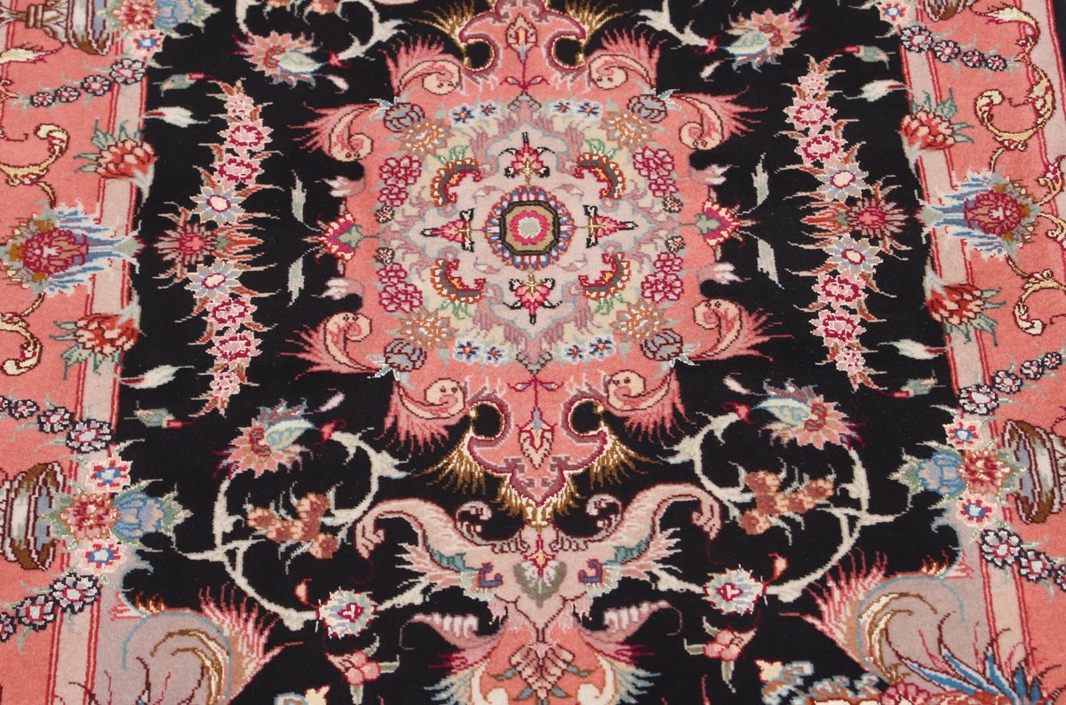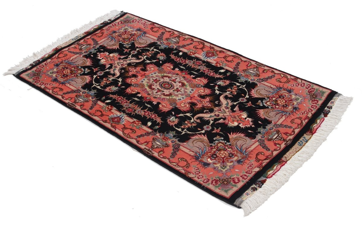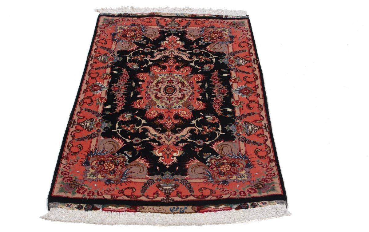 Für die besondere Eleganz des Täbriz-Flors sorgen hervorragende Materialien wie samtig anmutende Korkwolle und glänzende Seidenfäden. Die Knüpfqualität eines Täbriz-Teppichs lässt sich aus der angegebenen Raj-Zahl erschließen – je höher diese ausfällt, umso feiner ist die Knüpfdichte, die eine Million und mehr Knoten pro Quadratmeter erreichen kann. Bei besonders feingeknüpften Qualitäten kommt für die Kette statt des üblichen Baumwollgarns sogar Seide zum Einsatz.