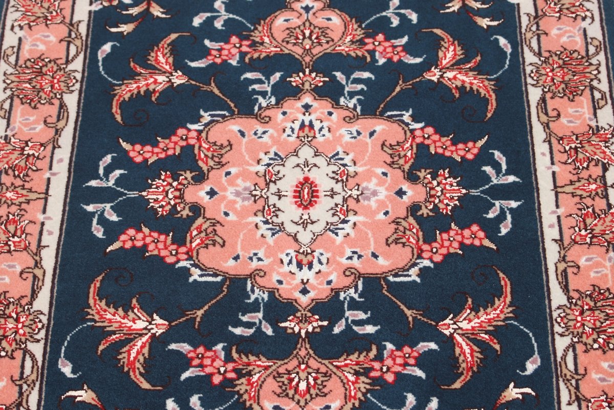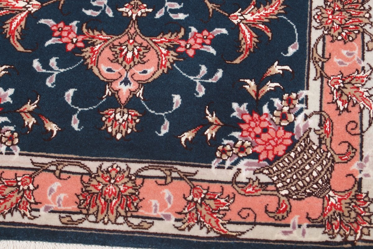 Für die besondere Eleganz des Täbriz-Flors sorgen hervorragende Materialien wie samtig anmutende Korkwolle und glänzende Seidenfäden. Die Knüpfqualität eines Täbriz-Teppichs lässt sich aus der angegebenen Raj-Zahl erschließen – je höher diese ausfällt, umso feiner ist die Knüpfdichte, die eine Million und mehr Knoten pro Quadratmeter erreichen kann. Bei besonders feingeknüpften Qualitäten kommt für die Kette statt des üblichen Baumwollgarns sogar Seide zum Einsatz.
