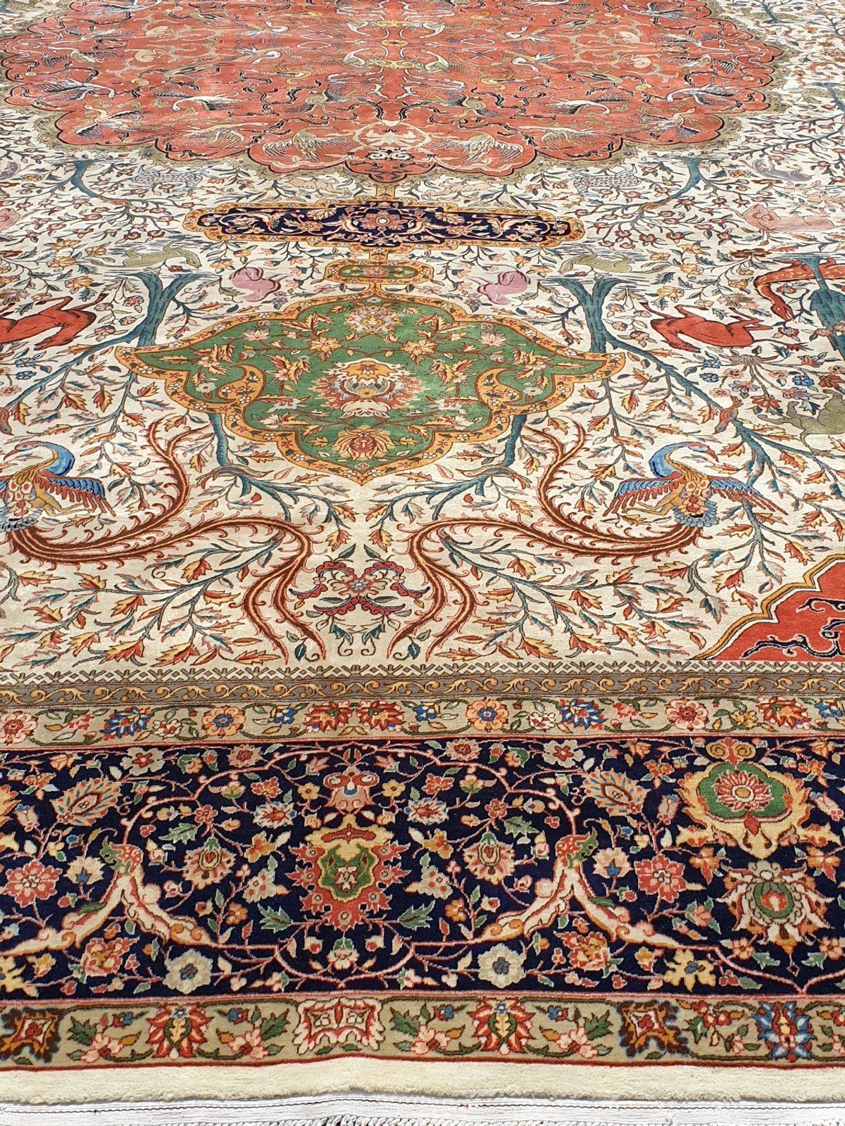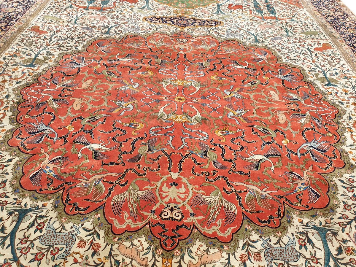 Auch mit seiner prachtvollen Ornamentik wird der Perserteppich höchsten Ansprüchen gerecht: ob traditionelles Mahi-Motiv mit Medaillon, klassische florale Muster, fantasievolle Bilderwelt oder Allover-Muster im Rapport – jedes Design von Täbriz-Teppichen bietet ein herrliches Erscheinungsbild, fördert stilvolles Ambiente und verleiht dem edlen Perserteppich das Potenzial, zu einem hochgeschätzten Sammlerstück zu werden.