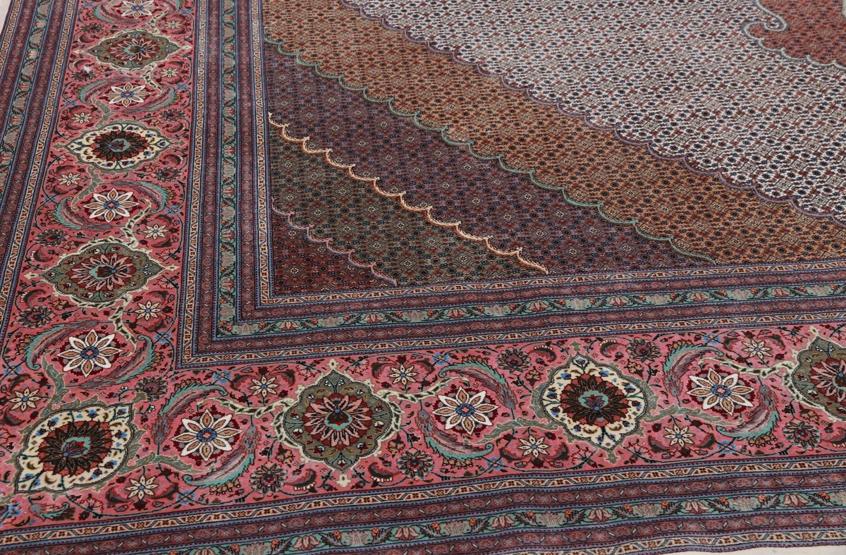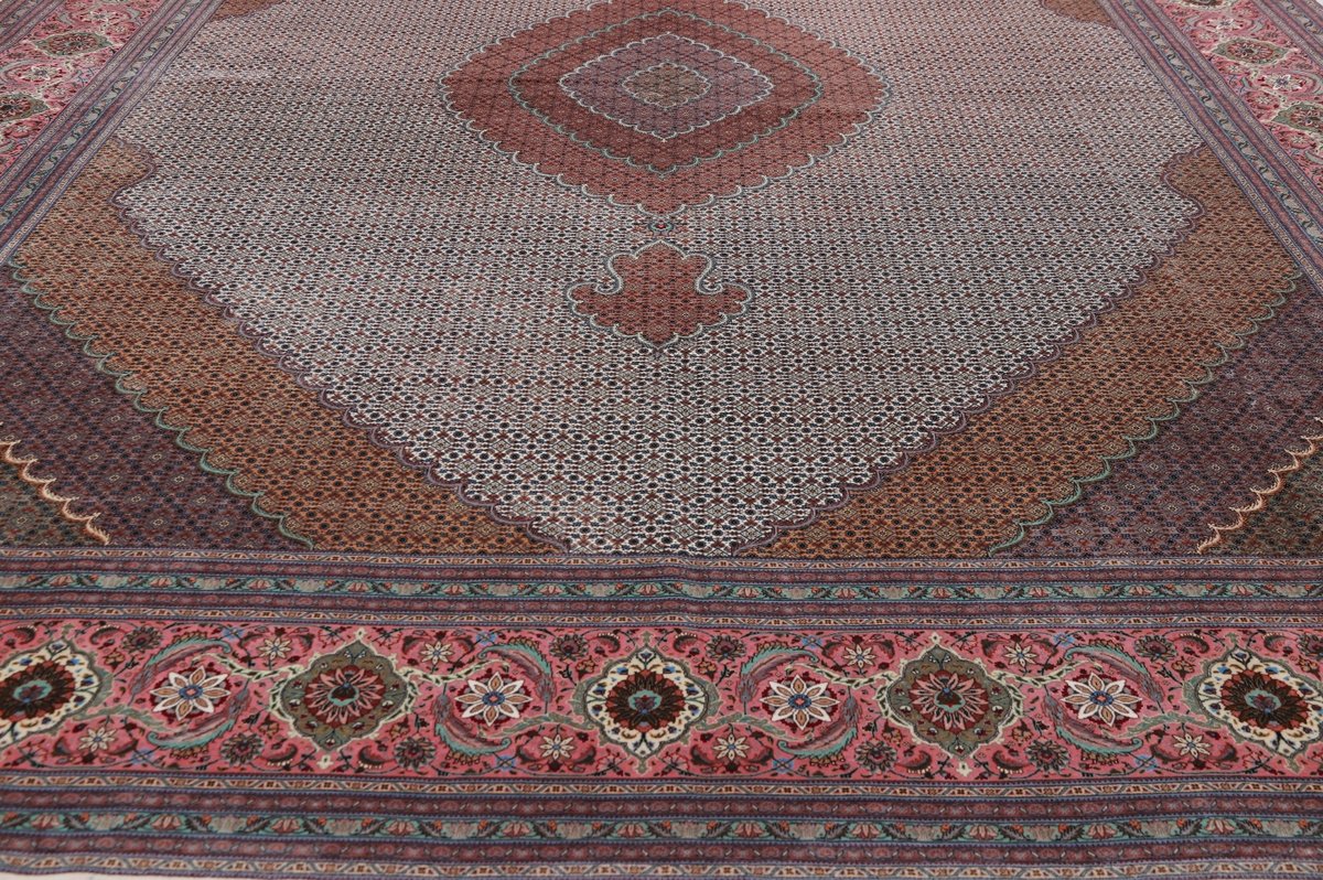 Auch mit seiner prachtvollen Ornamentik wird der Perserteppich höchsten Ansprüchen gerecht: ob traditionelles Mahi-Motiv mit Medaillon, klassische florale Muster, fantasievolle Bilderwelt oder Allover-Muster im Rapport – jedes Design von Täbriz-Teppichen bietet ein herrliches Erscheinungsbild, fördert stilvolles Ambiente und verleiht dem edlen Perserteppich das Potenzial, zu einem hochgeschätzten Sammlerstück zu werden.