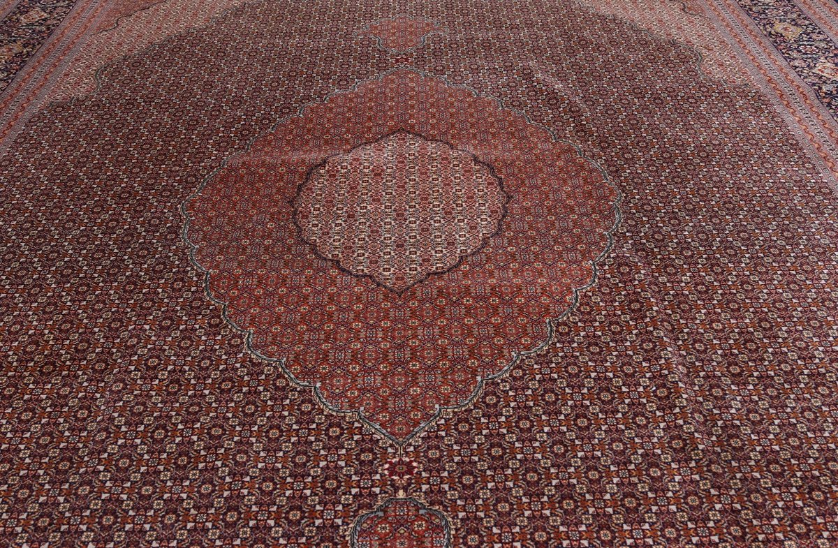 Auch mit seiner prachtvollen Ornamentik wird der Perserteppich höchsten Ansprüchen gerecht: ob traditionelles Mahi-Motiv mit Medaillon, klassische florale Muster, fantasievolle Bilderwelt oder Allover-Muster im Rapport – jedes Design von Täbriz-Teppichen bietet ein herrliches Erscheinungsbild, fördert stilvolles Ambiente und verleiht dem edlen Perserteppich das Potenzial, zu einem hochgeschätzten Sammlerstück zu werden.