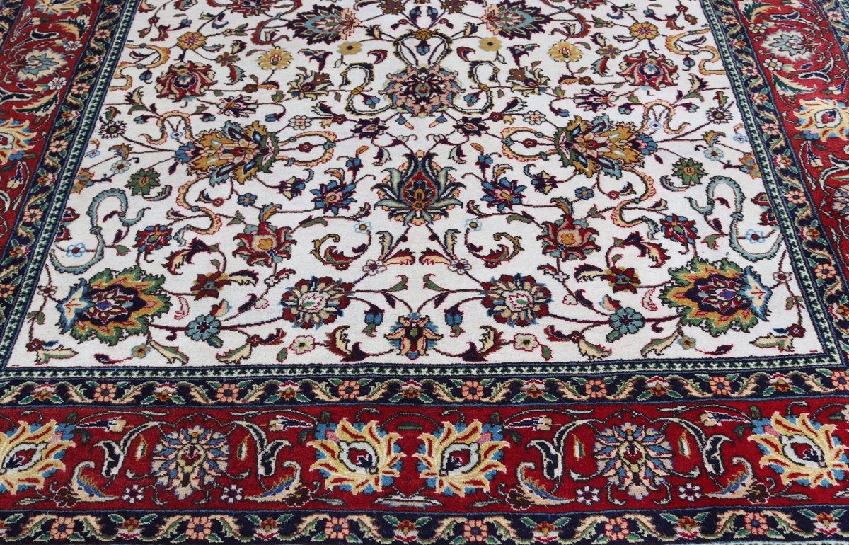Auch mit seiner prachtvollen Ornamentik wird der Perserteppich höchsten Ansprüchen gerecht: ob traditionelles Mahi-Motiv mit Medaillon, klassische florale Muster, fantasievolle Bilderwelt oder Allover-Muster im Rapport – jedes Design von Täbriz-Teppichen bietet ein herrliches Erscheinungsbild, fördert stilvolles Ambiente und verleiht dem edlen Perserteppich das Potenzial, zu einem hochgeschätzten Sammlerstück zu werden.