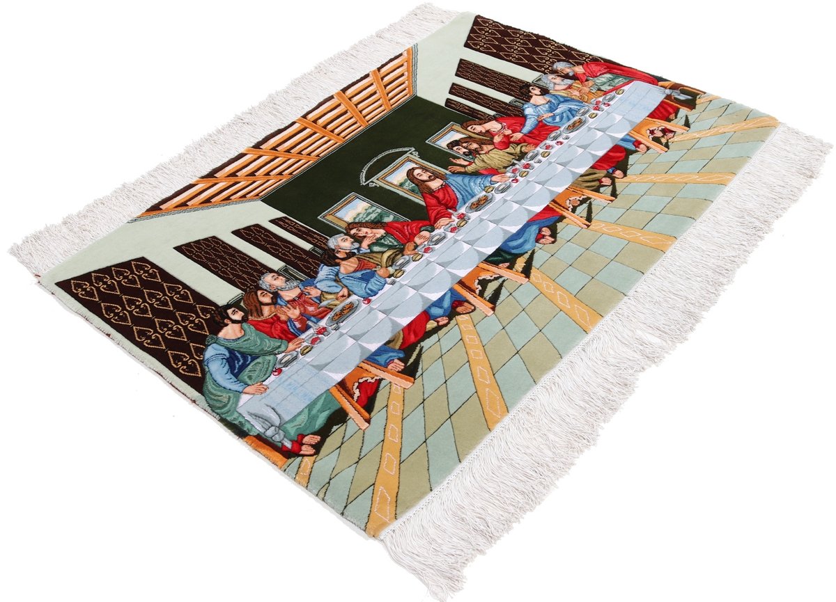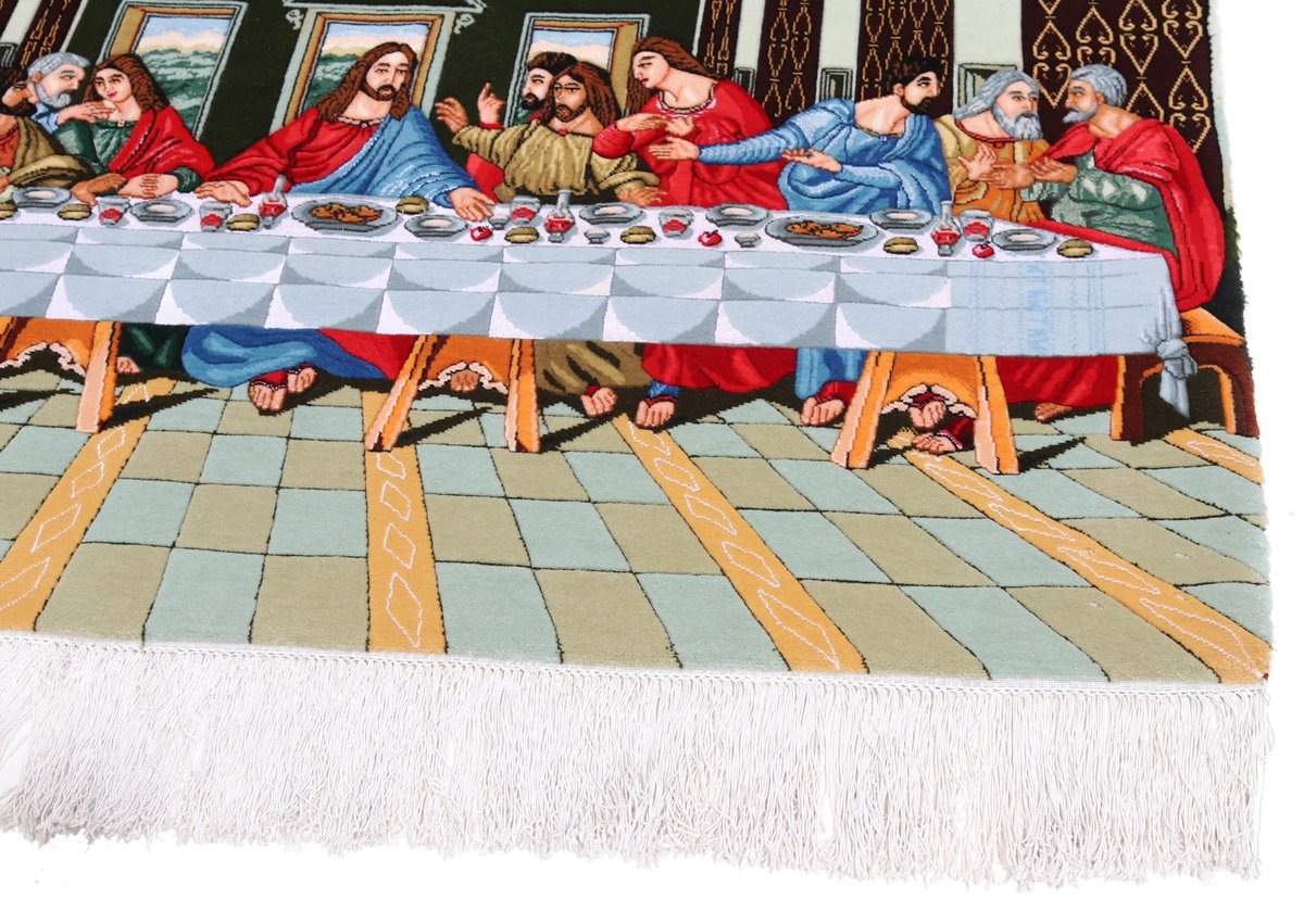 Für die besondere Eleganz des Täbriz-Flors sorgen hervorragende Materialien wie samtig anmutende Korkwolle und glänzende Seidenfäden. Die Knüpfqualität eines Täbriz-Teppichs lässt sich aus der angegebenen Raj-Zahl erschließen – je höher diese ausfällt, umso feiner ist die Knüpfdichte, die eine Million und mehr Knoten pro Quadratmeter erreichen kann. Bei besonders feingeknüpften Qualitäten kommt für die Kette statt des üblichen Baumwollgarns sogar Seide zum Einsatz.