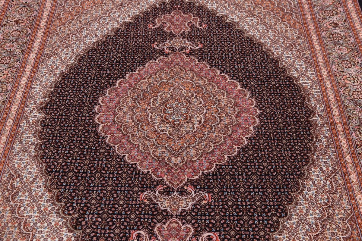 Auch mit seiner prachtvollen Ornamentik wird der Perserteppich höchsten Ansprüchen gerecht: ob traditionelles Mahi-Motiv mit Medaillon, klassische florale Muster, fantasievolle Bilderwelt oder Allover-Muster im Rapport – jedes Design von Täbriz-Teppichen bietet ein herrliches Erscheinungsbild, fördert stilvolles Ambiente und verleiht dem edlen Perserteppich das Potenzial, zu einem hochgeschätzten Sammlerstück zu werden.