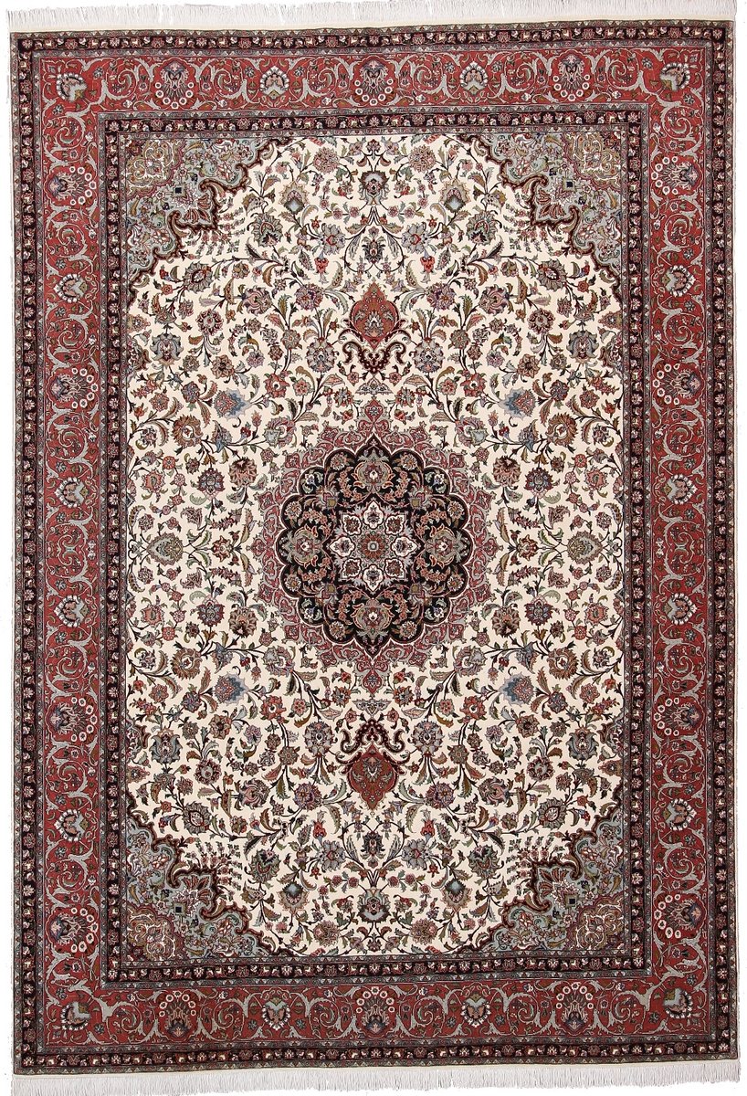 Auch mit seiner prachtvollen Ornamentik wird der Perserteppich höchsten Ansprüchen gerecht: ob traditionelles Mahi-Motiv mit Medaillon, klassische florale Muster, fantasievolle Bilderwelt oder Allover-Muster im Rapport – jedes Design von Täbriz-Teppichen bietet ein herrliches Erscheinungsbild, fördert stilvolles Ambiente und verleiht dem edlen Perserteppich das Potenzial, zu einem hochgeschätzten Sammlerstück zu werden.