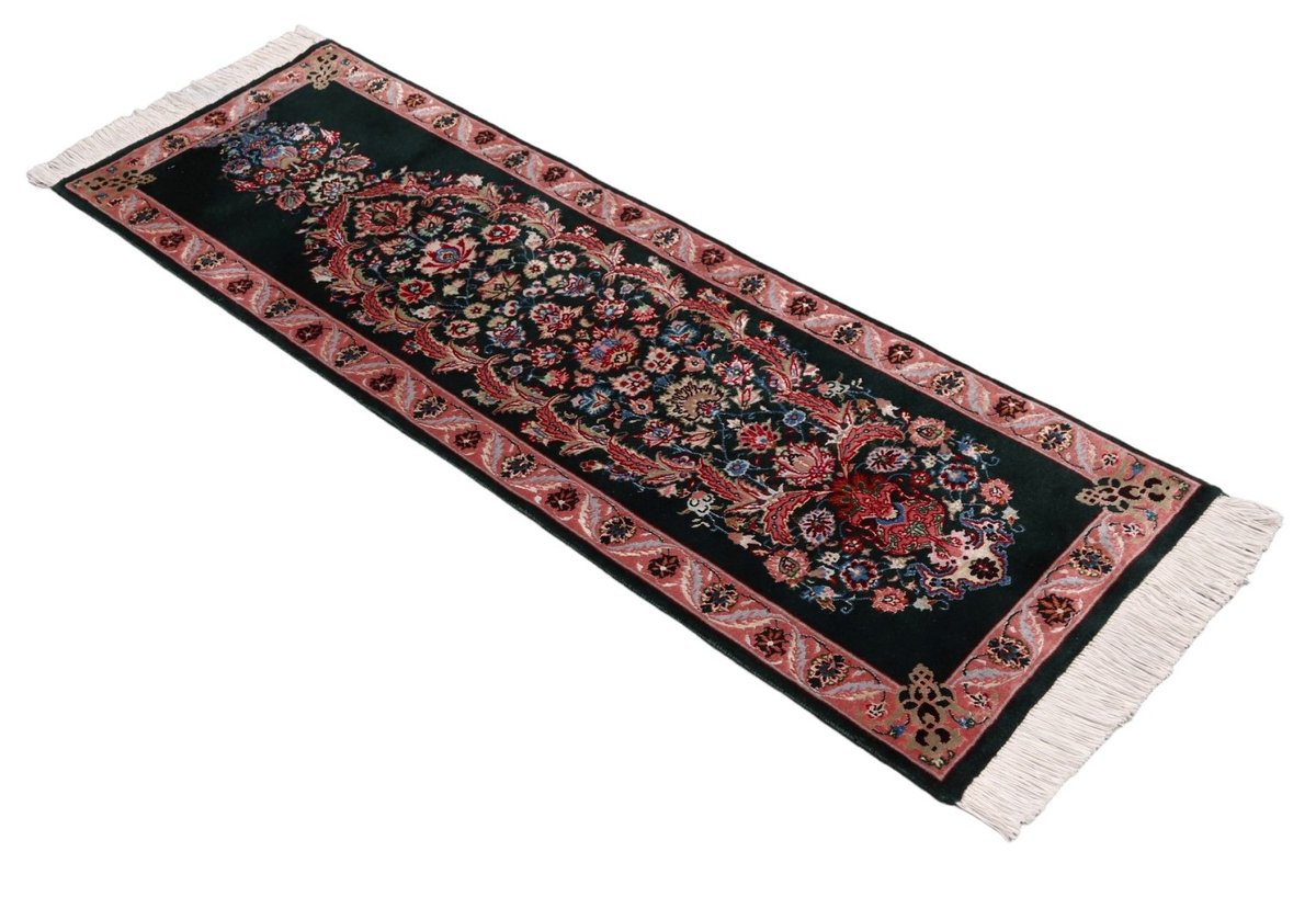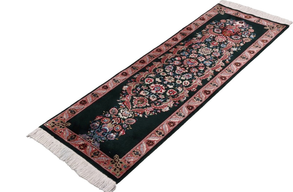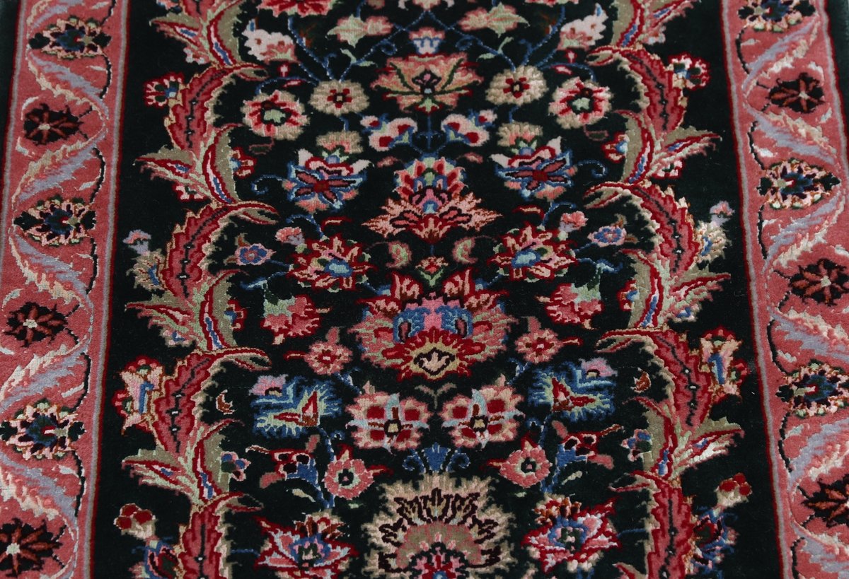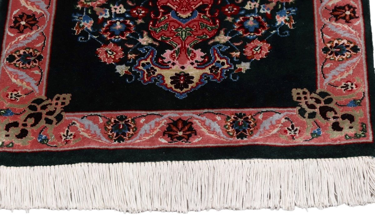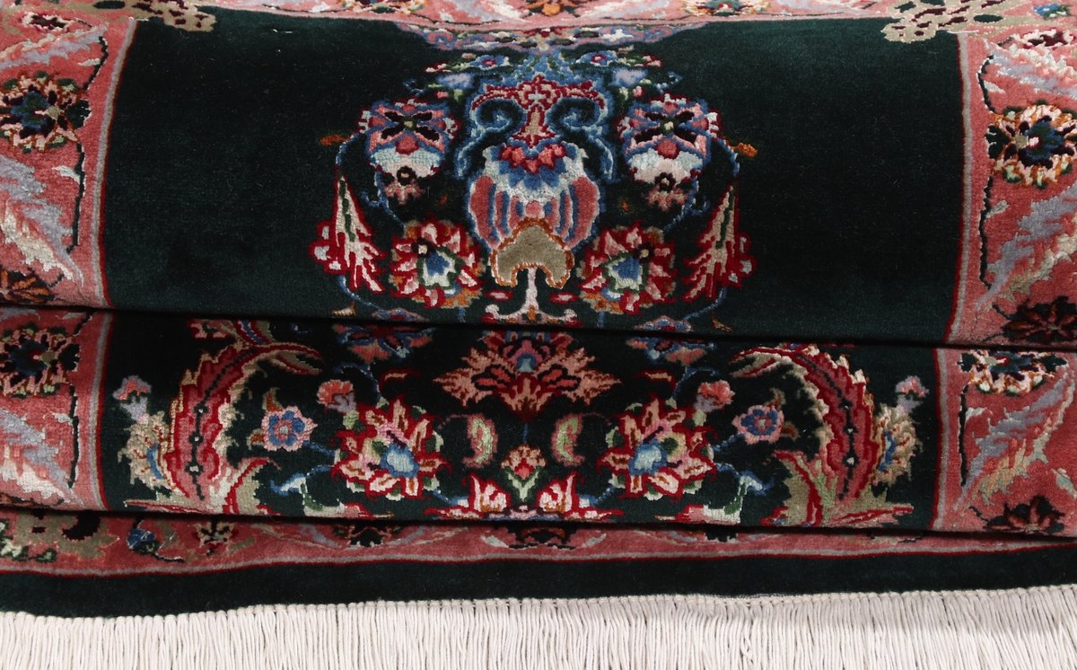 Für die besondere Eleganz des Täbriz-Flors sorgen hervorragende Materialien wie samtig anmutende Korkwolle und glänzende Seidenfäden. Die Knüpfqualität eines Täbriz-Teppichs lässt sich aus der angegebenen Raj-Zahl erschließen – je höher diese ausfällt, umso feiner ist die Knüpfdichte, die eine Million und mehr Knoten pro Quadratmeter erreichen kann. Bei besonders feingeknüpften Qualitäten kommt für die Kette statt des üblichen Baumwollgarns sogar Seide zum Einsatz.