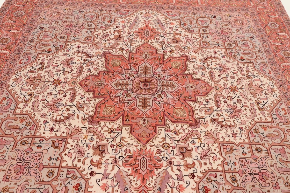 Auch mit seiner prachtvollen Ornamentik wird der Perserteppich höchsten Ansprüchen gerecht: ob traditionelles Mahi-Motiv mit Medaillon, klassische florale Muster, fantasievolle Bilderwelt oder Allover-Muster im Rapport – jedes Design von Täbriz-Teppichen bietet ein herrliches Erscheinungsbild, fördert stilvolles Ambiente und verleiht dem edlen Perserteppich das Potenzial, zu einem hochgeschätzten Sammlerstück zu werden.