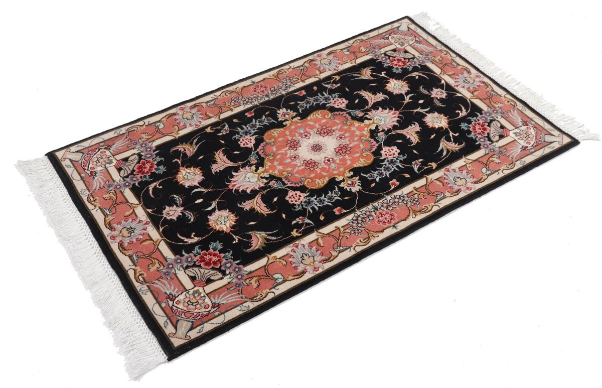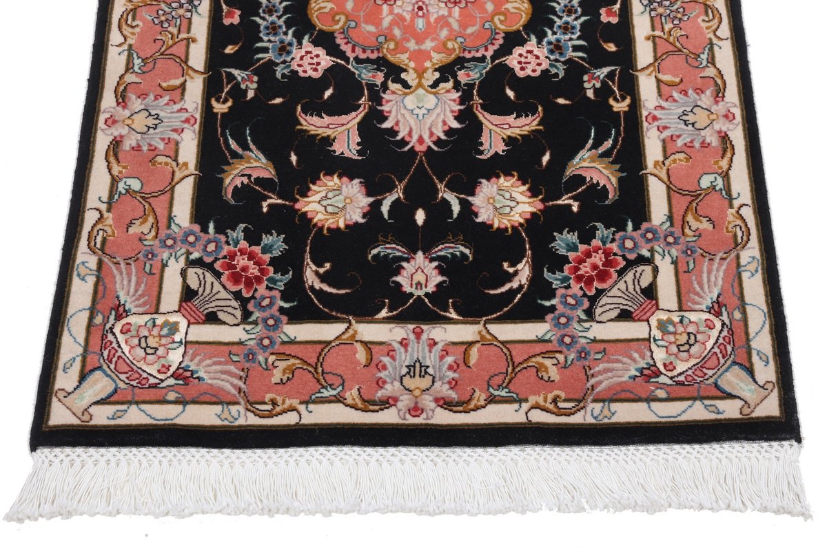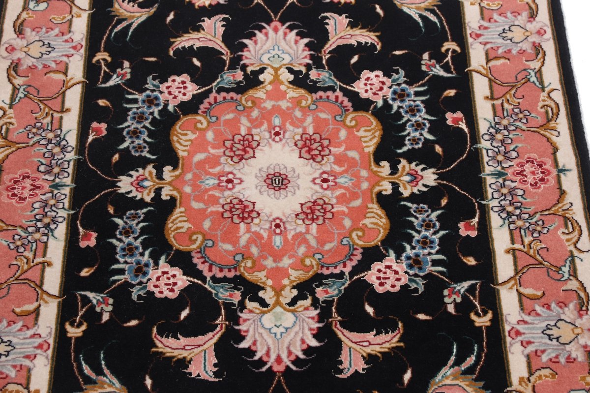 Für die besondere Eleganz des Täbriz-Flors sorgen hervorragende Materialien wie samtig anmutende Korkwolle und glänzende Seidenfäden. Die Knüpfqualität eines Täbriz-Teppichs lässt sich aus der angegebenen Raj-Zahl erschließen – je höher diese ausfällt, umso feiner ist die Knüpfdichte, die eine Million und mehr Knoten pro Quadratmeter erreichen kann. Bei besonders feingeknüpften Qualitäten kommt für die Kette statt des üblichen Baumwollgarns sogar Seide zum Einsatz.