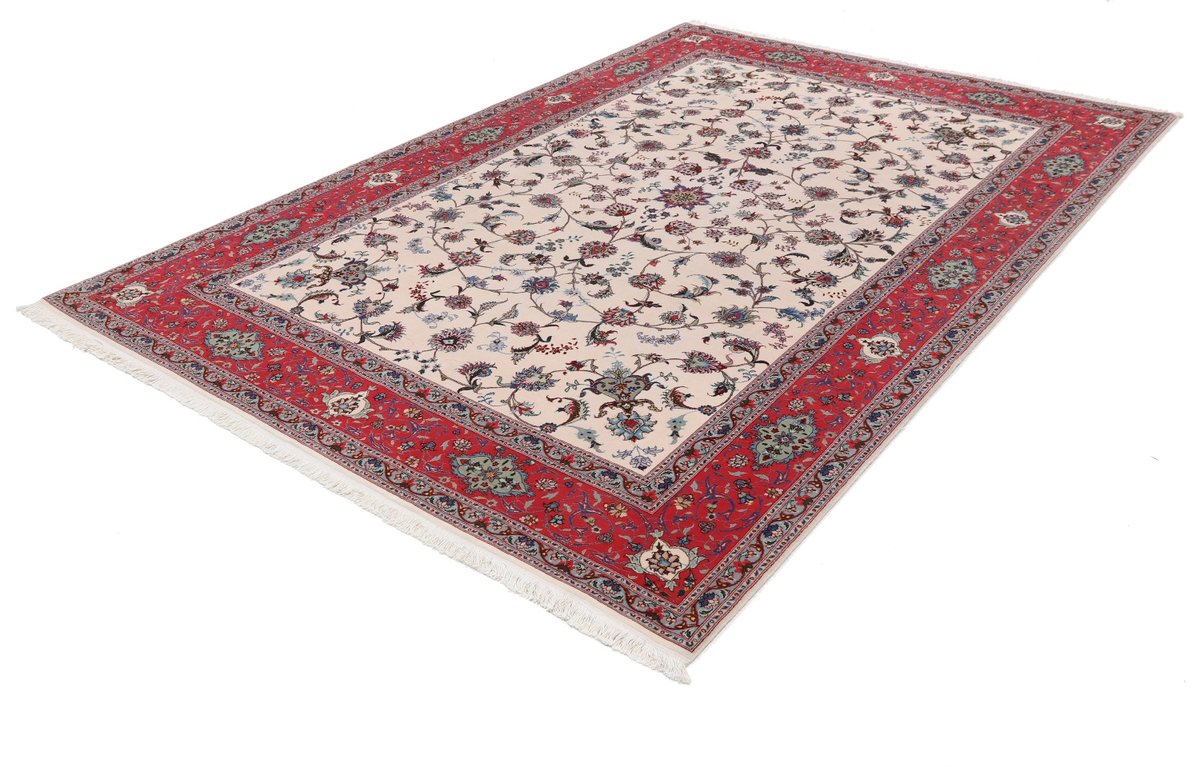 Auch mit seiner prachtvollen Ornamentik wird der Perserteppich höchsten Ansprüchen gerecht: ob traditionelles Mahi-Motiv mit Medaillon, klassische florale Muster, fantasievolle Bilderwelt oder Allover-Muster im Rapport – jedes Design von Täbriz-Teppichen bietet ein herrliches Erscheinungsbild, fördert stilvolles Ambiente und verleiht dem edlen Perserteppich das Potenzial, zu einem hochgeschätzten Sammlerstück zu werden.