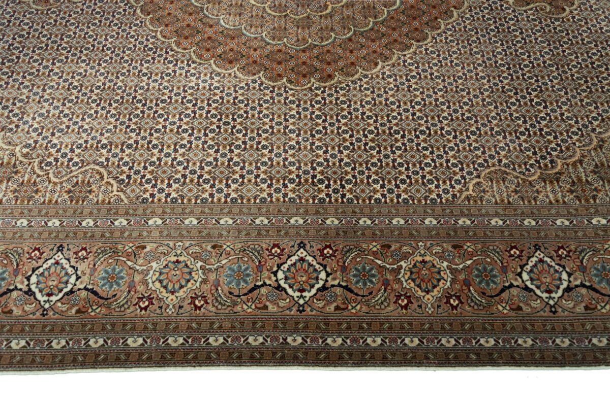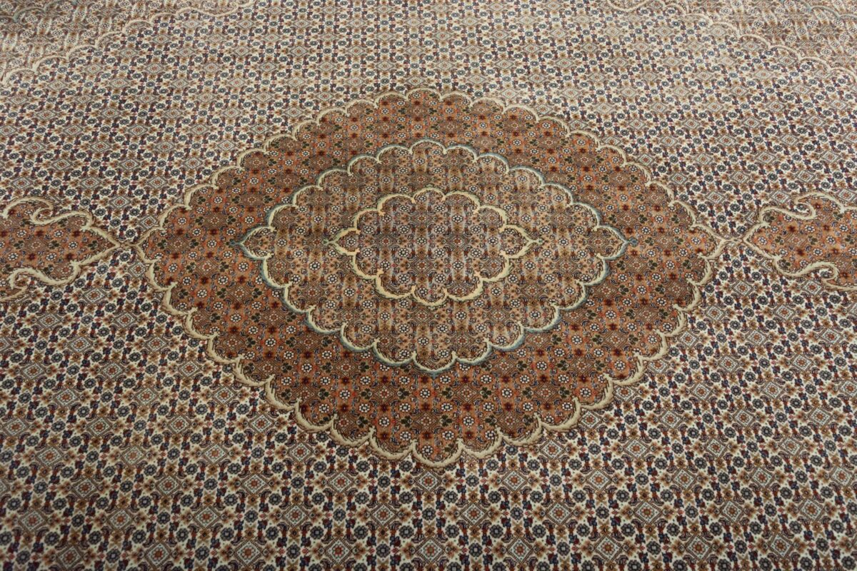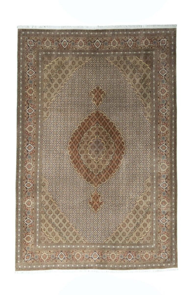 Auch mit seiner prachtvollen Ornamentik wird der Perserteppich höchsten Ansprüchen gerecht: ob traditionelles Mahi-Motiv mit Medaillon, klassische florale Muster, fantasievolle Bilderwelt oder Allover-Muster im Rapport – jedes Design von Täbriz-Teppichen bietet ein herrliches Erscheinungsbild, fördert stilvolles Ambiente und verleiht dem edlen Perserteppich das Potenzial, zu einem hochgeschätzten Sammlerstück zu werden.