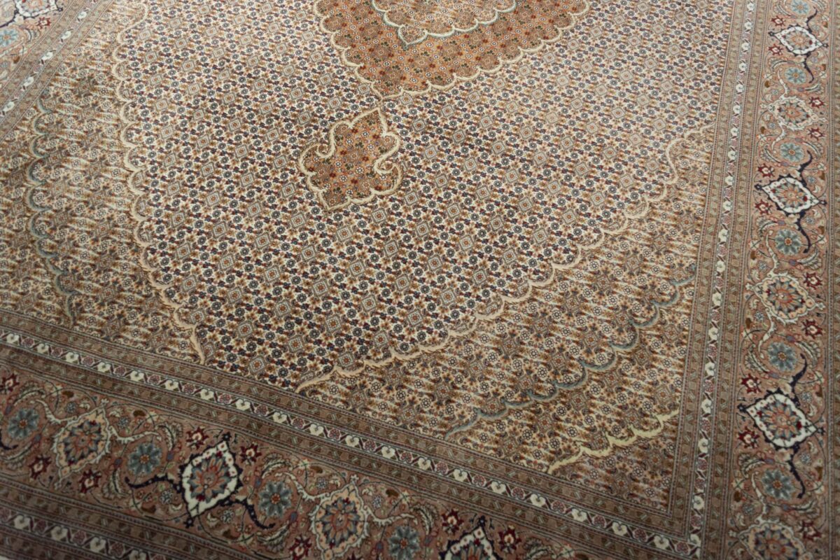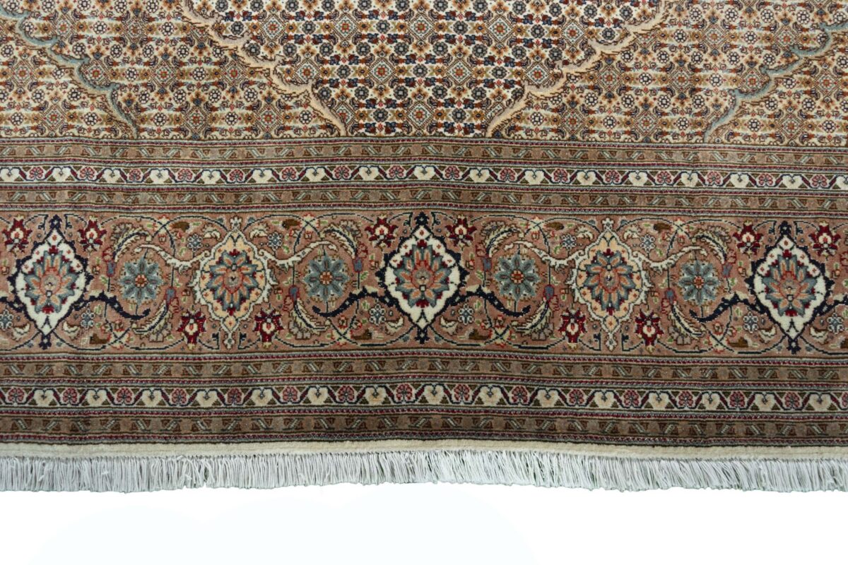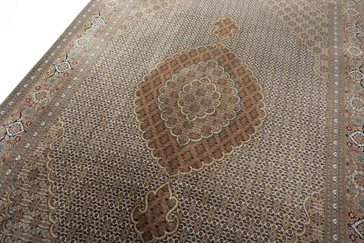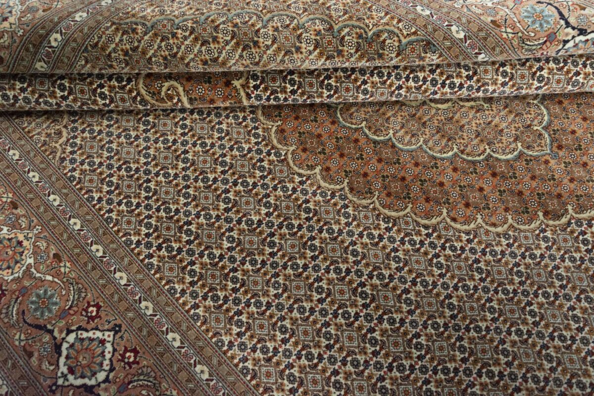 Auch mit seiner prachtvollen Ornamentik wird der Perserteppich höchsten Ansprüchen gerecht: ob traditionelles Mahi-Motiv mit Medaillon, klassische florale Muster, fantasievolle Bilderwelt oder Allover-Muster im Rapport – jedes Design von Täbriz-Teppichen bietet ein herrliches Erscheinungsbild, fördert stilvolles Ambiente und verleiht dem edlen Perserteppich das Potenzial, zu einem hochgeschätzten Sammlerstück zu werden.