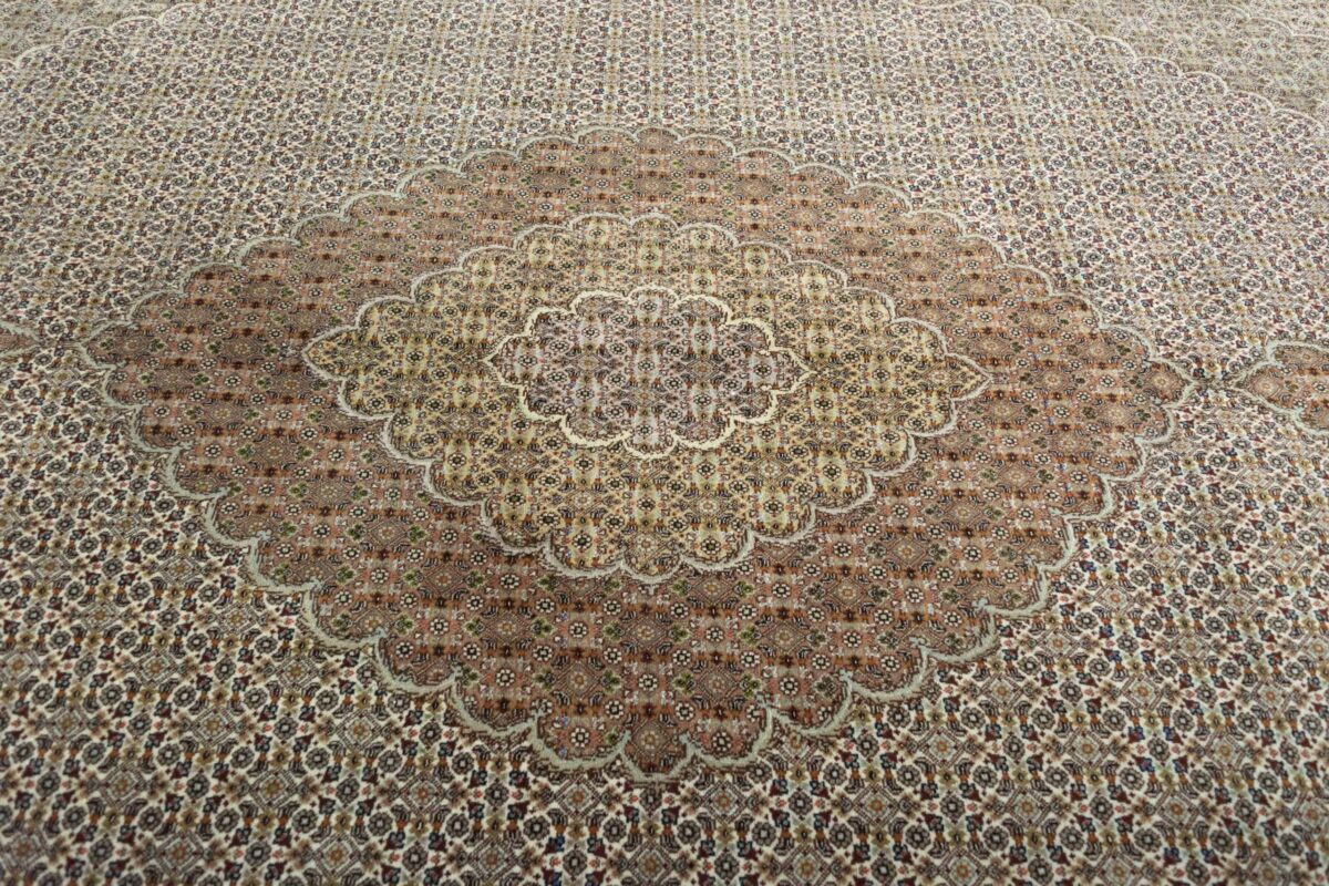 Auch mit seiner prachtvollen Ornamentik wird der Perserteppich höchsten Ansprüchen gerecht: ob traditionelles Mahi-Motiv mit Medaillon, klassische florale Muster, fantasievolle Bilderwelt oder Allover-Muster im Rapport – jedes Design von Täbriz-Teppichen bietet ein herrliches Erscheinungsbild, fördert stilvolles Ambiente und verleiht dem edlen Perserteppich das Potenzial, zu einem hochgeschätzten Sammlerstück zu werden.