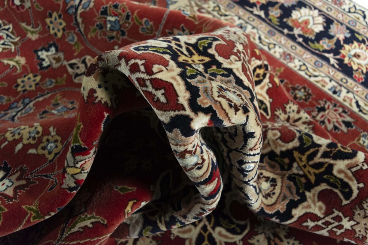 Auch mit seiner prachtvollen Ornamentik wird der Perserteppich höchsten Ansprüchen gerecht: ob traditionelles Mahi-Motiv mit Medaillon, klassische florale Muster, fantasievolle Bilderwelt oder Allover-Muster im Rapport – jedes Design von Täbriz-Teppichen bietet ein herrliches Erscheinungsbild, fördert stilvolles Ambiente und verleiht dem edlen Perserteppich das Potenzial, zu einem hochgeschätzten Sammlerstück zu werden.