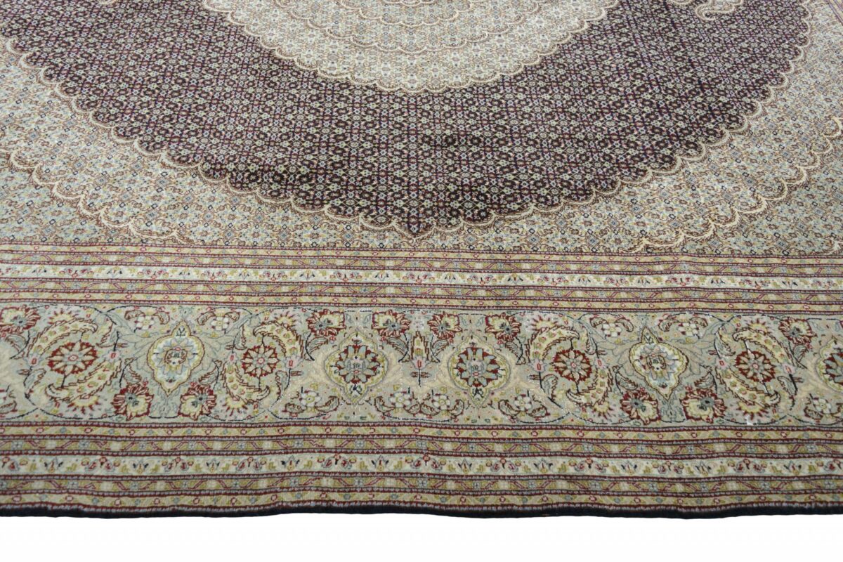 Der klassische Täbriz-Perserteppich zählt aufgrund seiner ausgezeichneten Knüpf- und Materialqualitäten sowie der einprägsamen Musterdesigns zu den begehrtesten Manufakturteppichen weltweit. Echte, handgeknüpfte Täbriz-Teppiche stammen aus der gleichnamigen Hauptstadt Ost-Aserbaidschans, einer nordiranischen Kulturmetropole und geschichtsträchtigen Stadt, die bereits im 16. Jahrhundert zu den führenden Zentren der Perserteppich-Produktion gehörte.