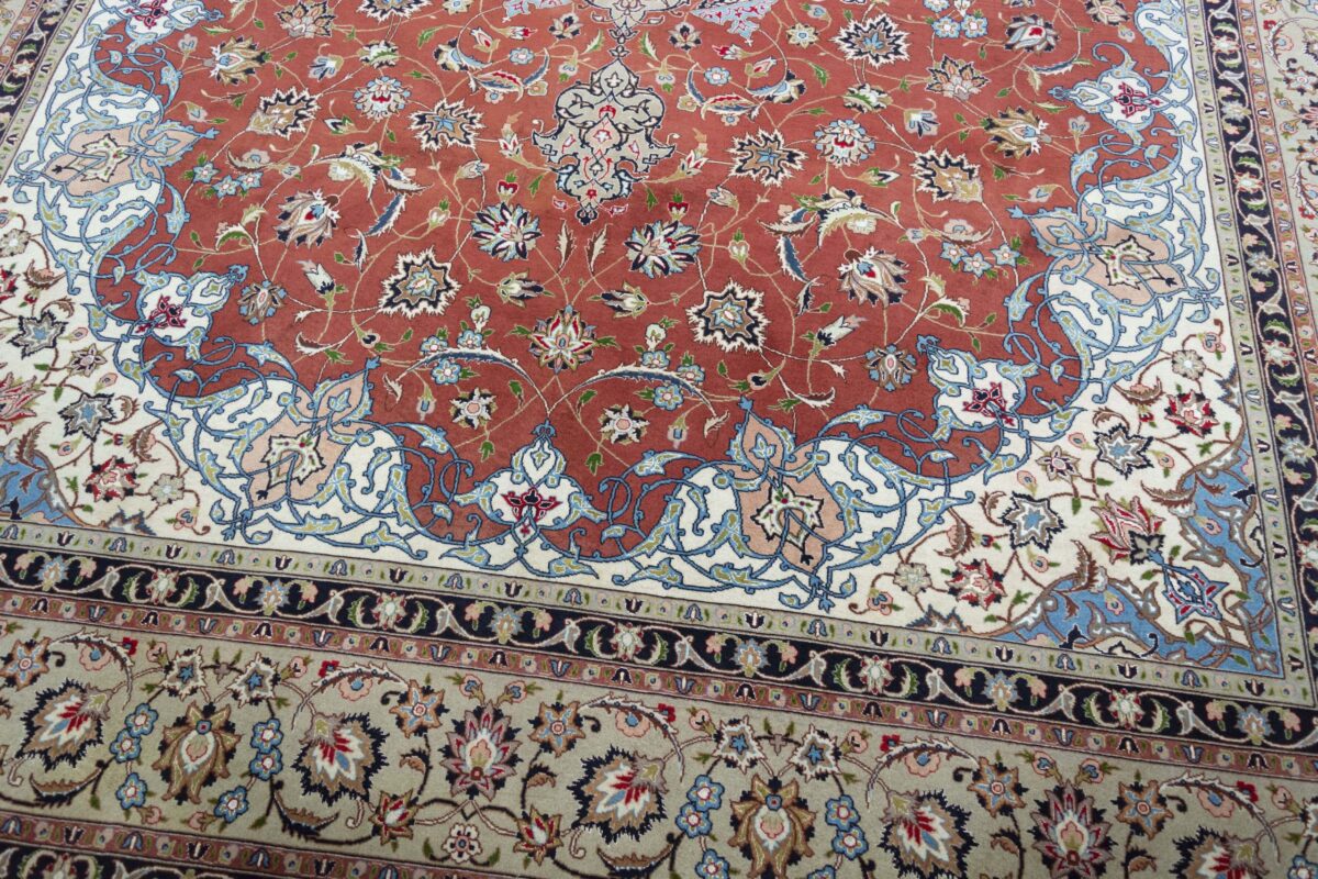 Auch mit seiner prachtvollen Ornamentik wird der Perserteppich höchsten Ansprüchen gerecht: ob traditionelles Mahi-Motiv mit Medaillon, klassische florale Muster, fantasievolle Bilderwelt oder Allover-Muster im Rapport – jedes Design von Täbriz-Teppichen bietet ein herrliches Erscheinungsbild, fördert stilvolles Ambiente und verleiht dem edlen Perserteppich das Potenzial, zu einem hochgeschätzten Sammlerstück zu werden.