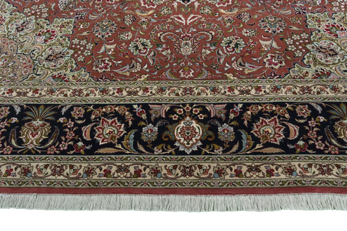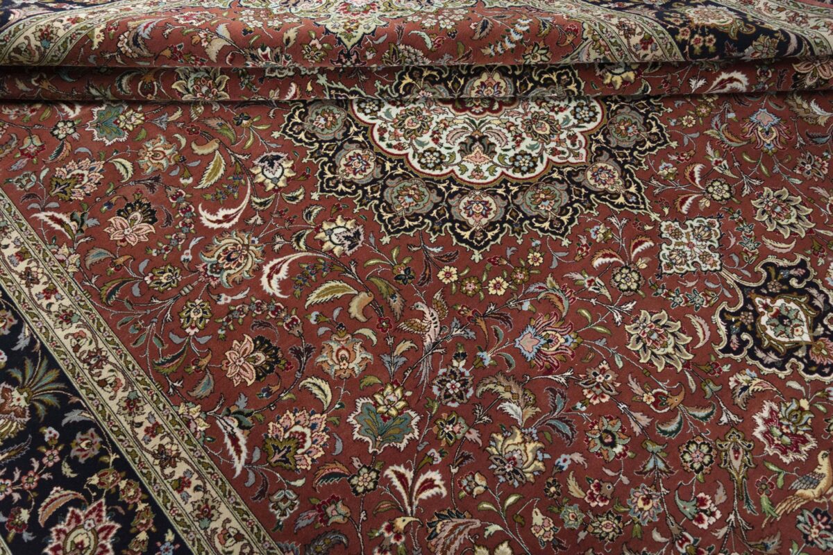 Auch mit seiner prachtvollen Ornamentik wird der Perserteppich höchsten Ansprüchen gerecht: ob traditionelles Mahi-Motiv mit Medaillon, klassische florale Muster, fantasievolle Bilderwelt oder Allover-Muster im Rapport – jedes Design von Täbriz-Teppichen bietet ein herrliches Erscheinungsbild, fördert stilvolles Ambiente und verleiht dem edlen Perserteppich das Potenzial, zu einem hochgeschätzten Sammlerstück zu werden.