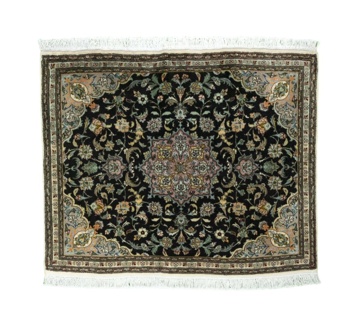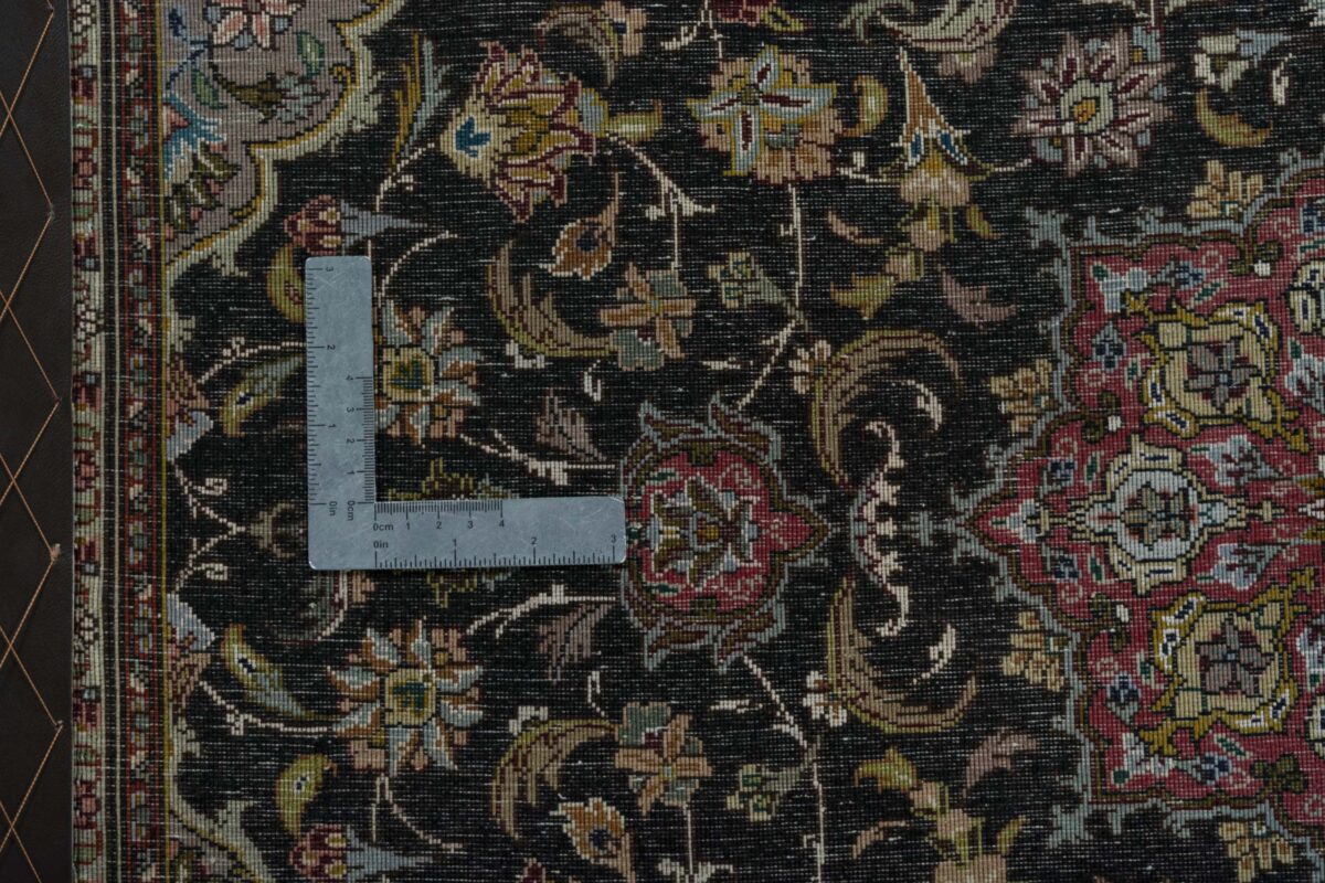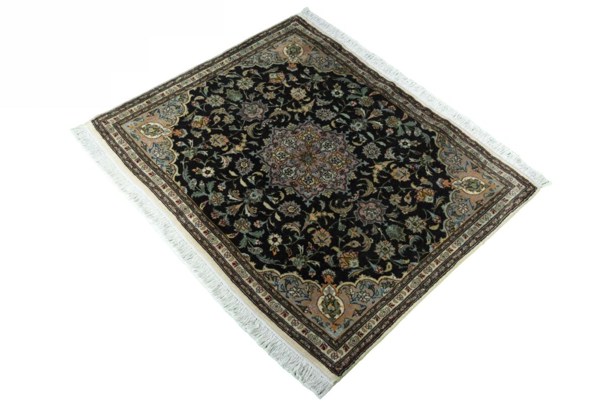Für die besondere Eleganz des Täbriz-Flors sorgen hervorragende Materialien wie samtig anmutende Korkwolle und glänzende Seidenfäden. Die Knüpfqualität eines Täbriz-Teppichs lässt sich aus der angegebenen Raj-Zahl erschließen – je höher diese ausfällt, umso feiner ist die Knüpfdichte, die eine Million und mehr Knoten pro Quadratmeter erreichen kann. Bei besonders feingeknüpften Qualitäten kommt für die Kette statt des üblichen Baumwollgarns sogar Seide zum Einsatz.