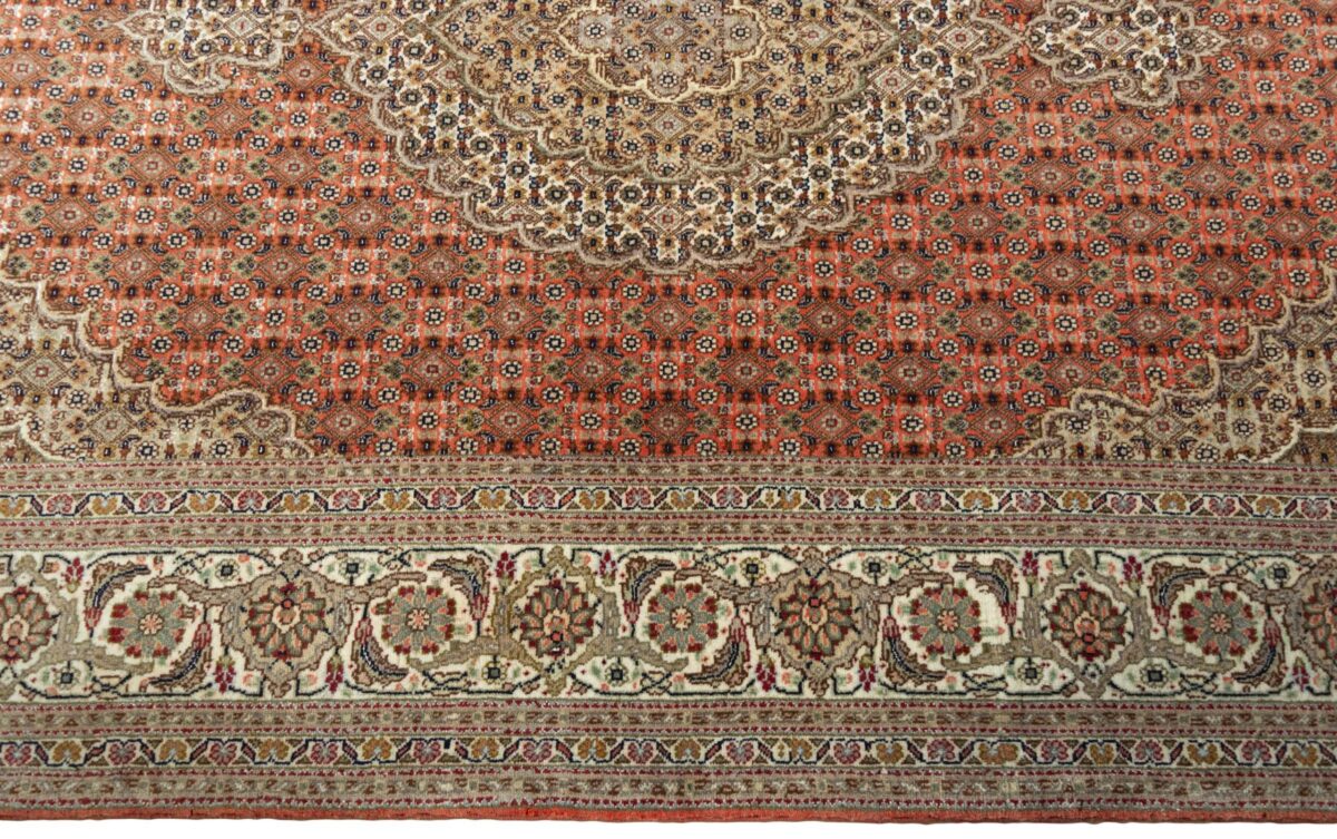 Auch mit seiner prachtvollen Ornamentik wird der Perserteppich höchsten Ansprüchen gerecht: ob traditionelles Mahi-Motiv mit Medaillon, klassische florale Muster, fantasievolle Bilderwelt oder Allover-Muster im Rapport – jedes Design von Täbriz-Teppichen bietet ein herrliches Erscheinungsbild, fördert stilvolles Ambiente und verleiht dem edlen Perserteppich das Potenzial, zu einem hochgeschätzten Sammlerstück zu werden.