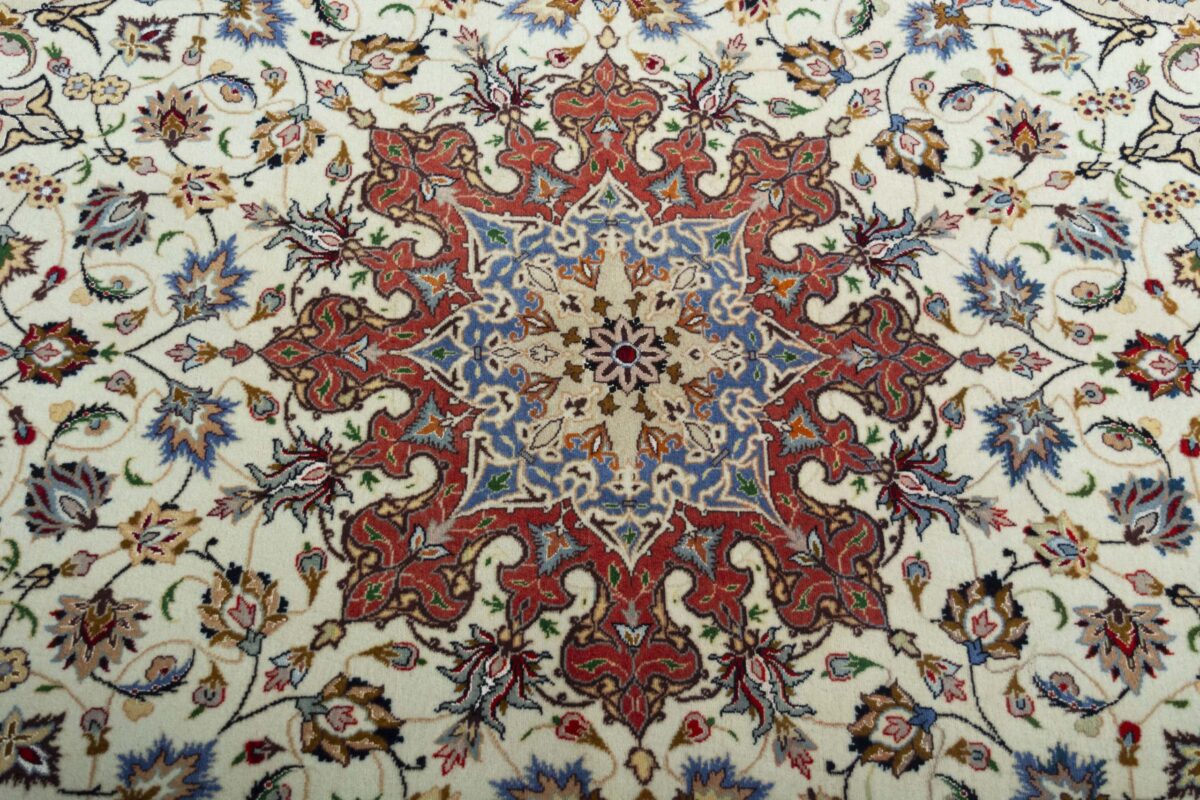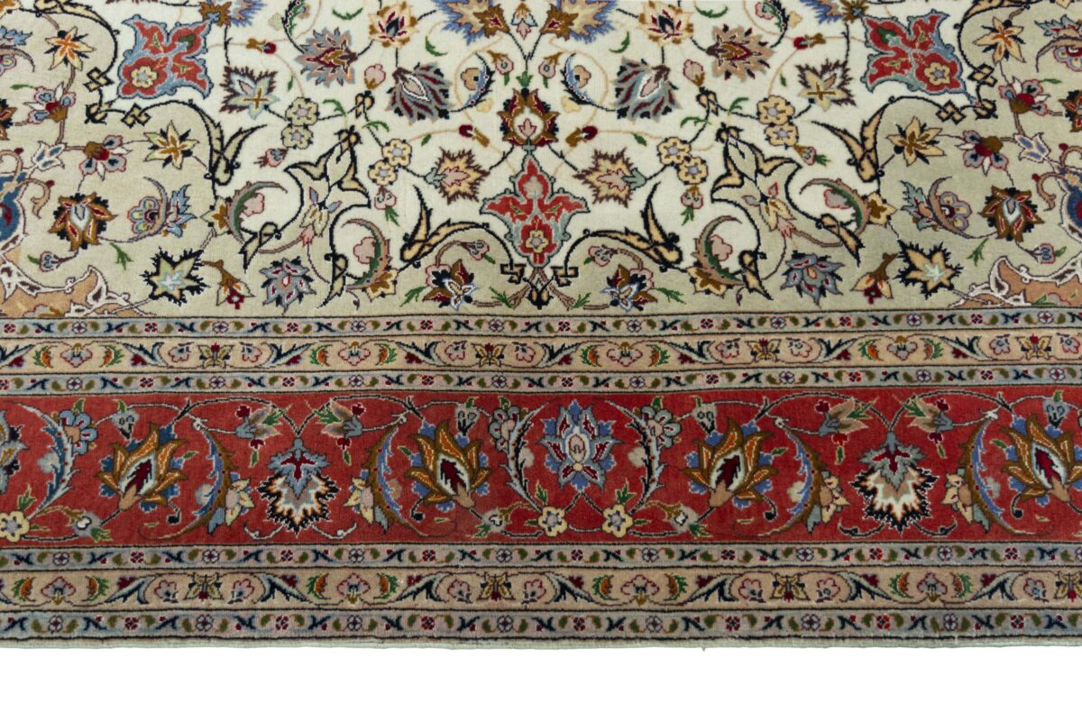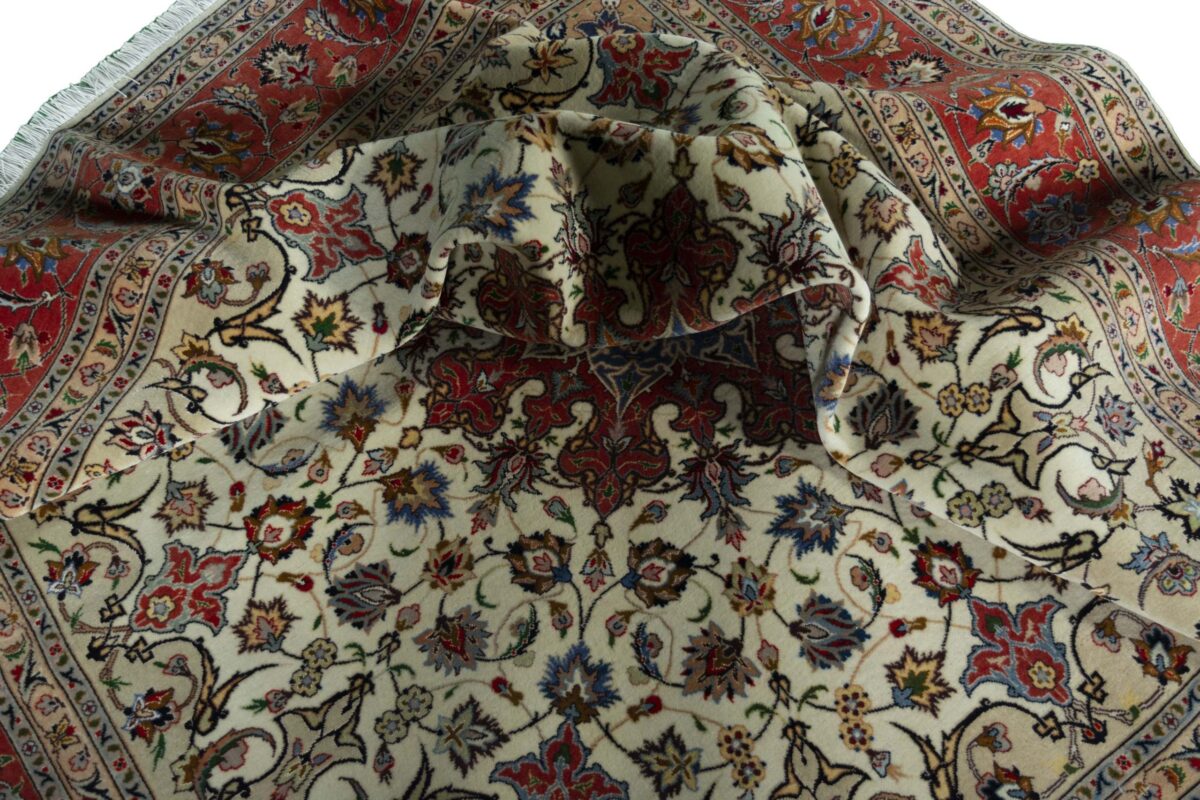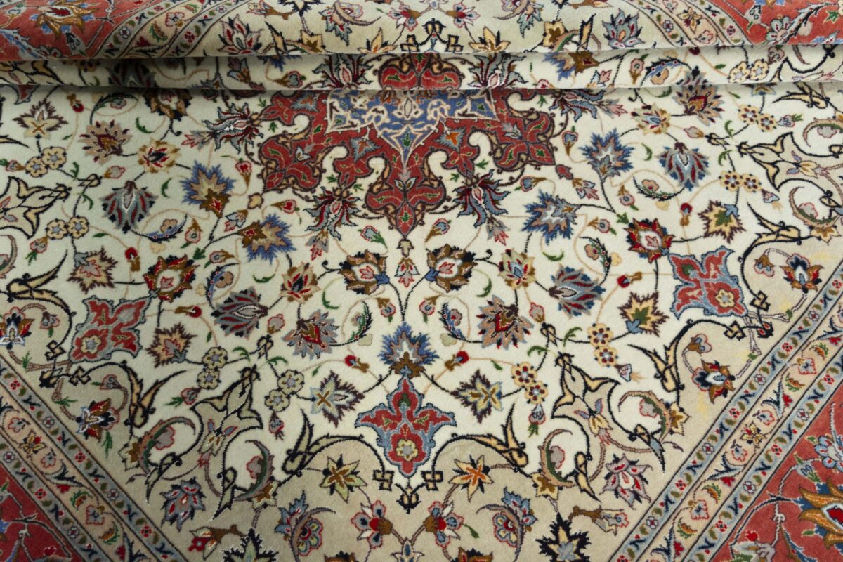 Auch mit seiner prachtvollen Ornamentik wird der Perserteppich höchsten Ansprüchen gerecht: ob traditionelles Mahi-Motiv mit Medaillon, klassische florale Muster, fantasievolle Bilderwelt oder Allover-Muster im Rapport – jedes Design von Täbriz-Teppichen bietet ein herrliches Erscheinungsbild, fördert stilvolles Ambiente und verleiht dem edlen Perserteppich das Potenzial, zu einem hochgeschätzten Sammlerstück zu werden.